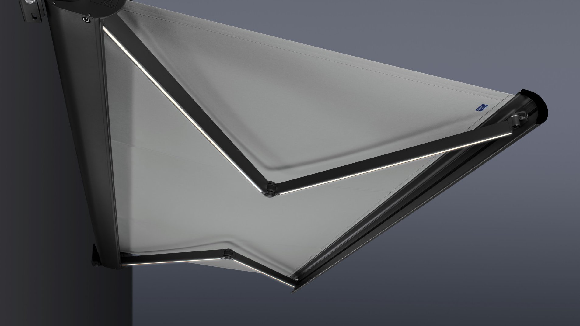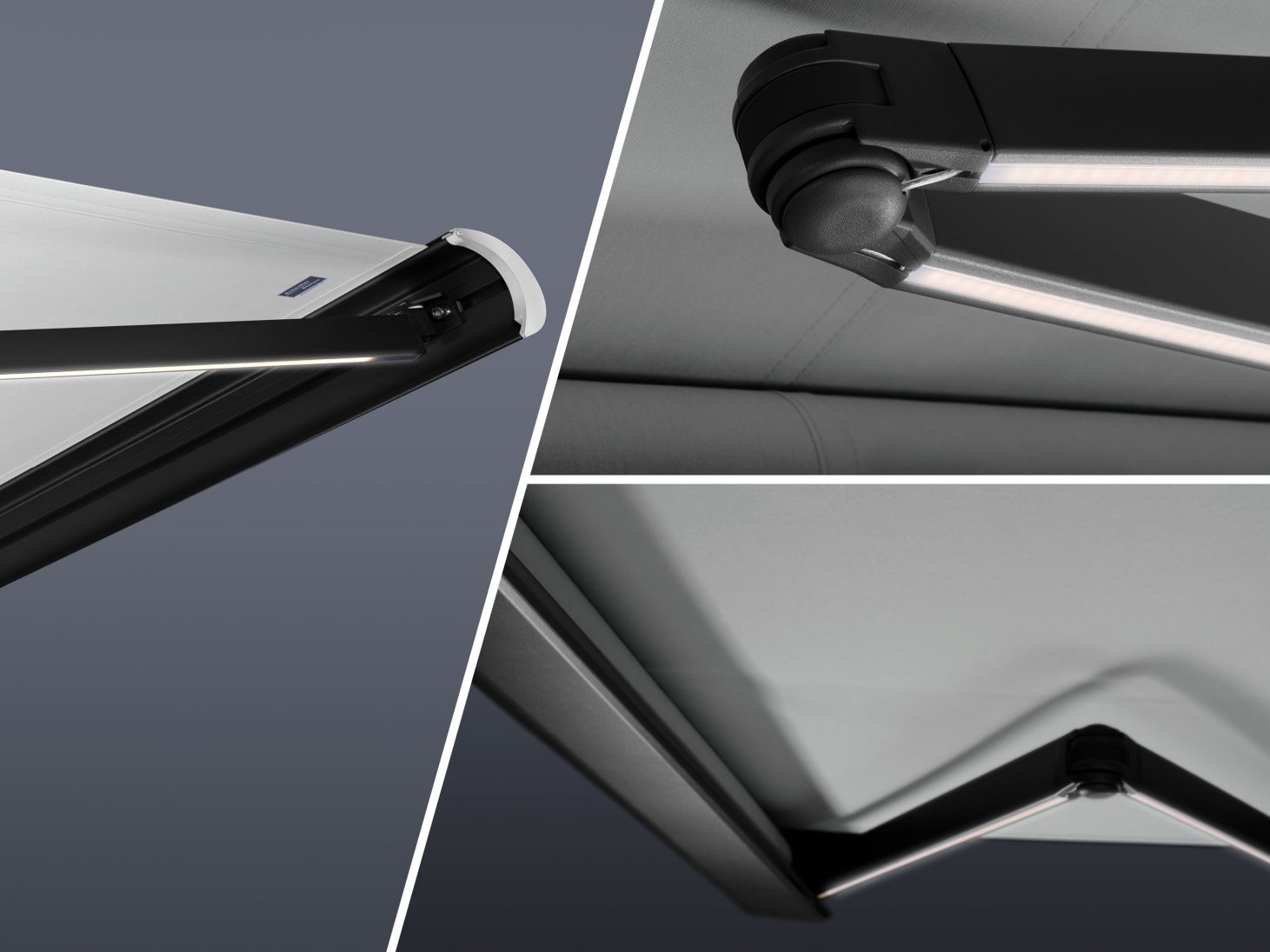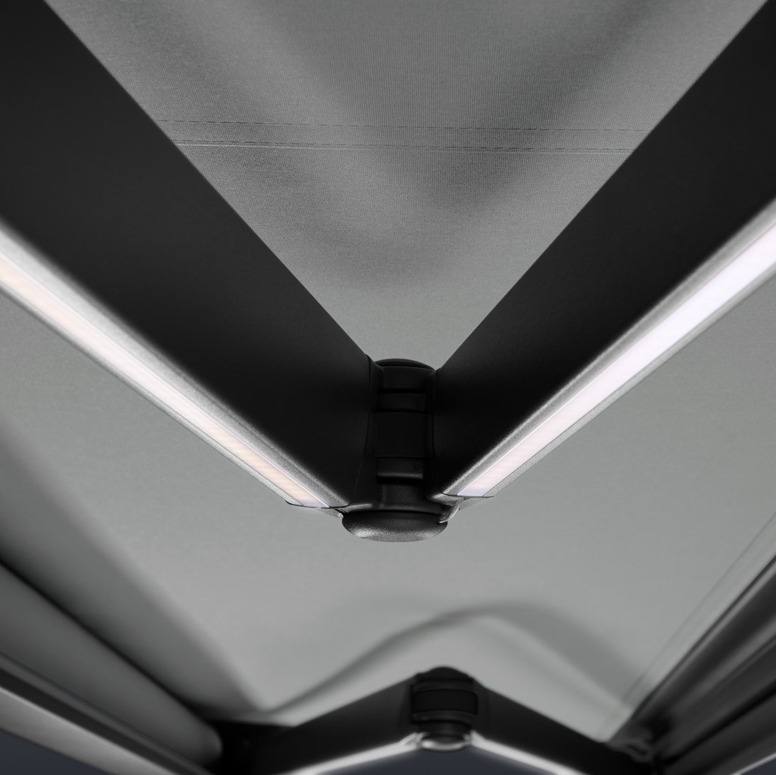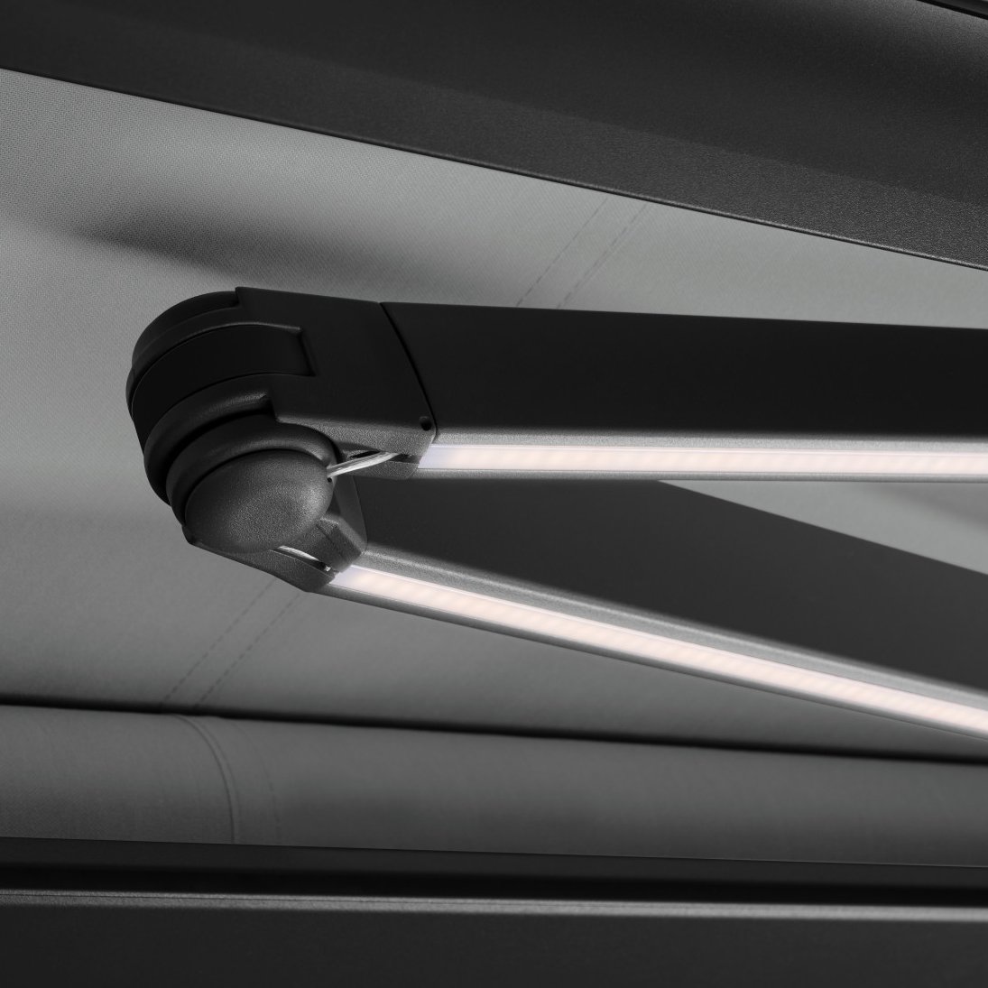 Simon Baumann: LED lighting is fitted in the box profile of individual sun blinds. I always thought it would be best to integrate the LEDs in the articulated arms as this way the light shines down directly from above. As we embarked on this project to design the next generation of articulated arms, we seized the opportunity to develop the addition of elegant LED lighting.