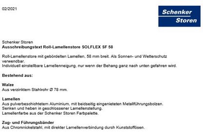 Ausschreibungstext Roll-Lamellenstore SOLFLEX SF 58
