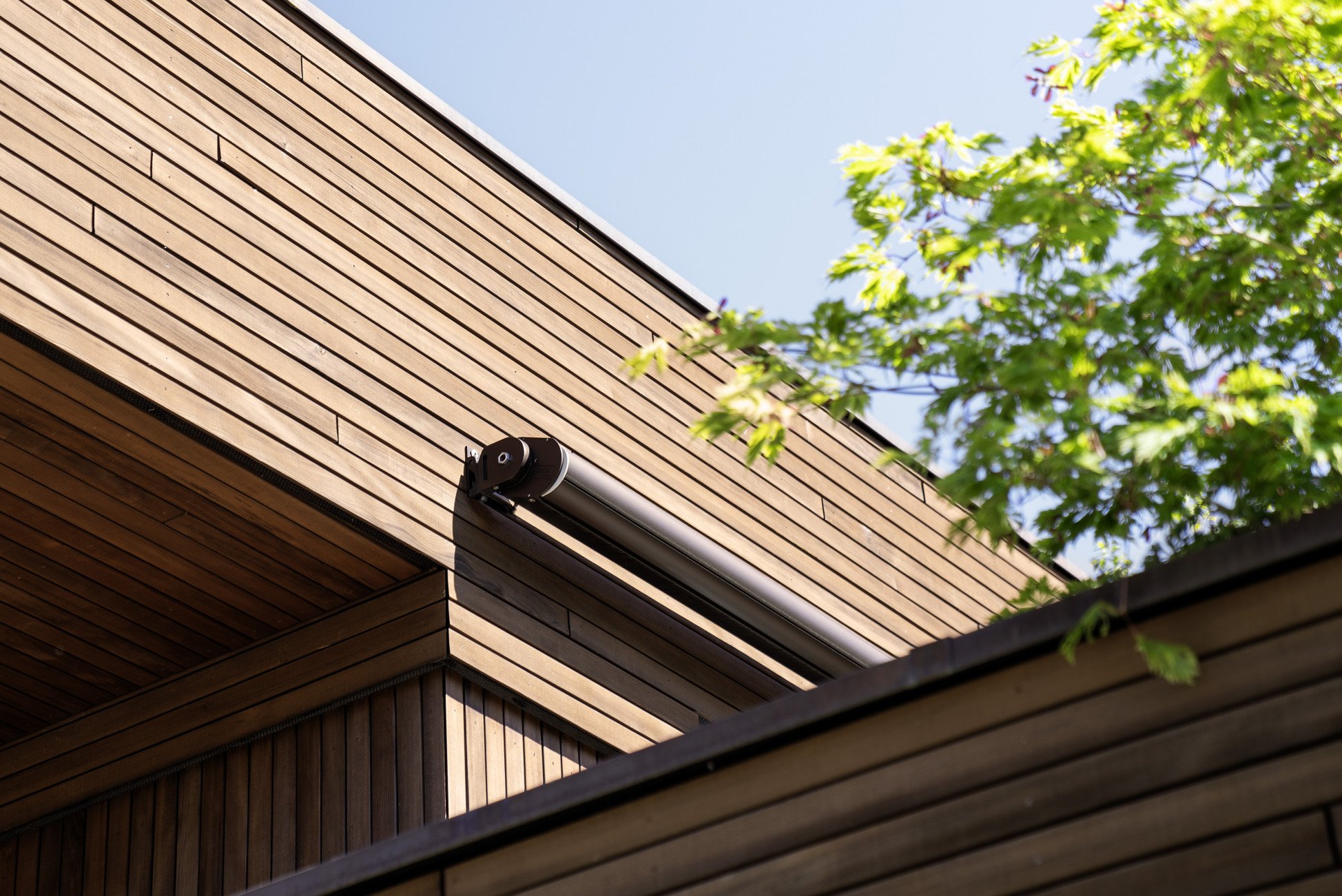 The intricate wooden facades needed an aesthetically elegant form of sun shading. Not only do the fabric blinds create a pleasant atmosphere, each facade lends a defining finishing touch. The vertical fabric blind VSe ZIP combines the elegance of a fabric blind with the highest demands in terms of shading and its darkening effect. The sophisticated ZIP system ensures that the fabric is well guided on the sides in every position and is wind-stable at speeds of up to 92 km/h. The VSe ZIP is a MINERGIE®-compatible fabric blind, which is vital since all the apartments are built and certified in accordance with the MINERGIE® standard.