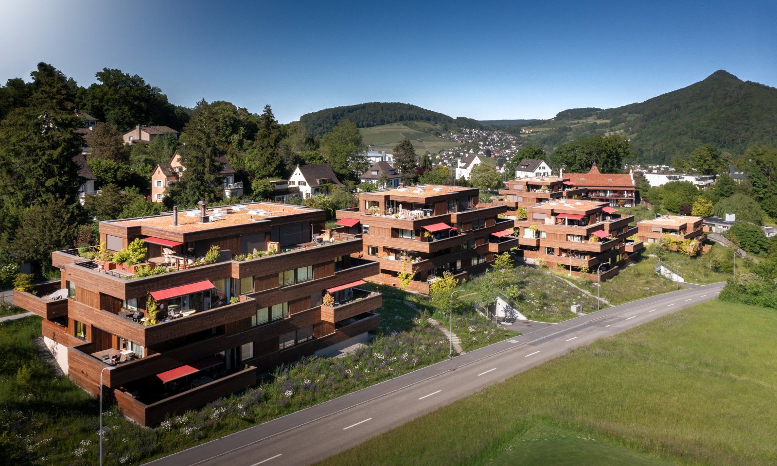 The former shooting grounds in “Belvédère”, a popular residential district above the city centre of Baden, are now home to seven exclusive apartment buildings, each with three to nine spacious 2½–6½-bedroom condominiums. The listed Shooting House was also integrated into the new complex. The blocks within this new district are significantly more closely knit than those of the single-family homes in the surrounding area. Nonetheless, the architecturally elegant buildings structured with projections and recesses, fit in perfectly with the overall design of the Allmend quarter because they are staggered in their layout and vary in height. Covered and uncovered terraces intersect. The balconies projecting from different floors create a fluid connection from indoors to outdoors.