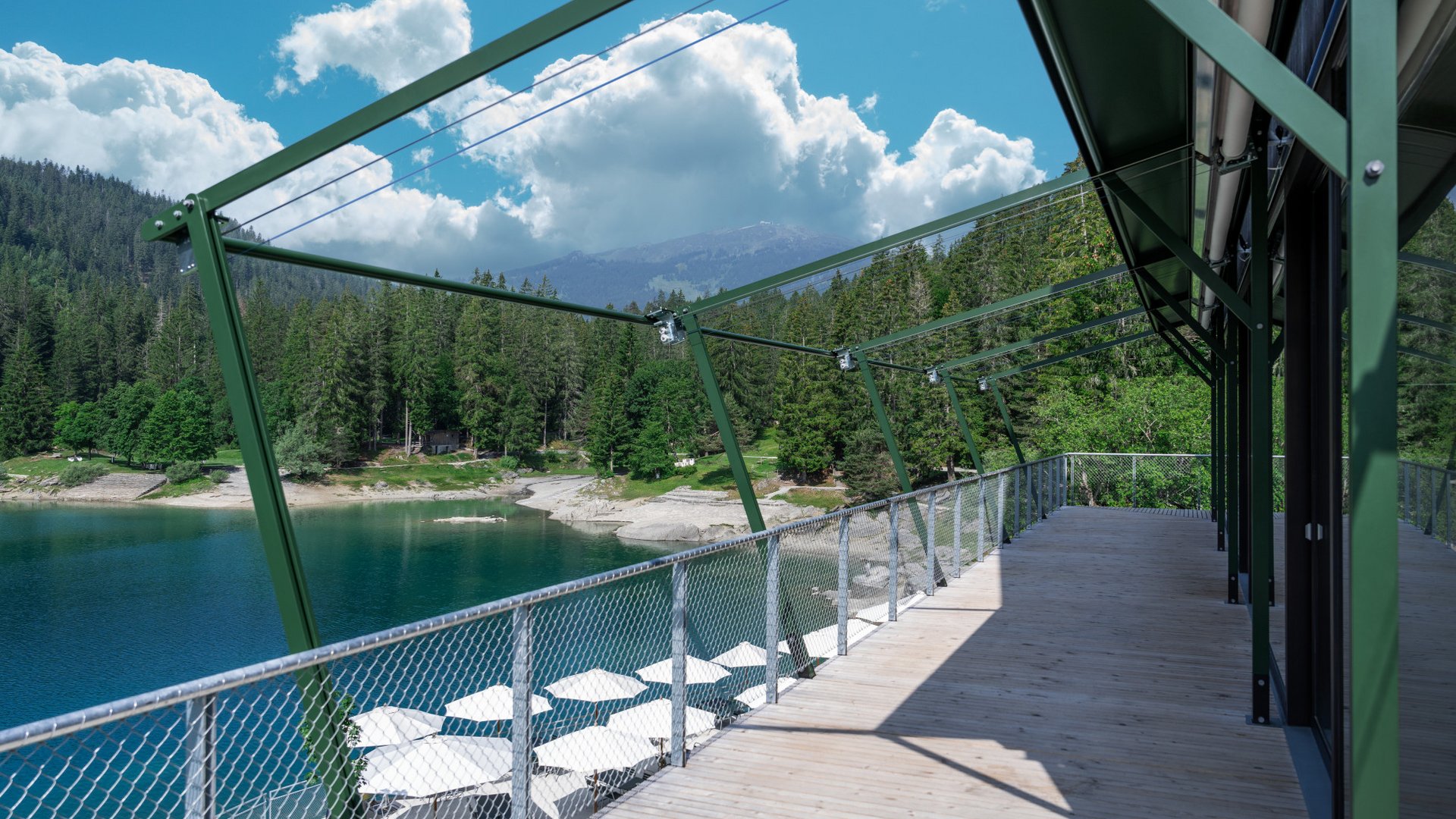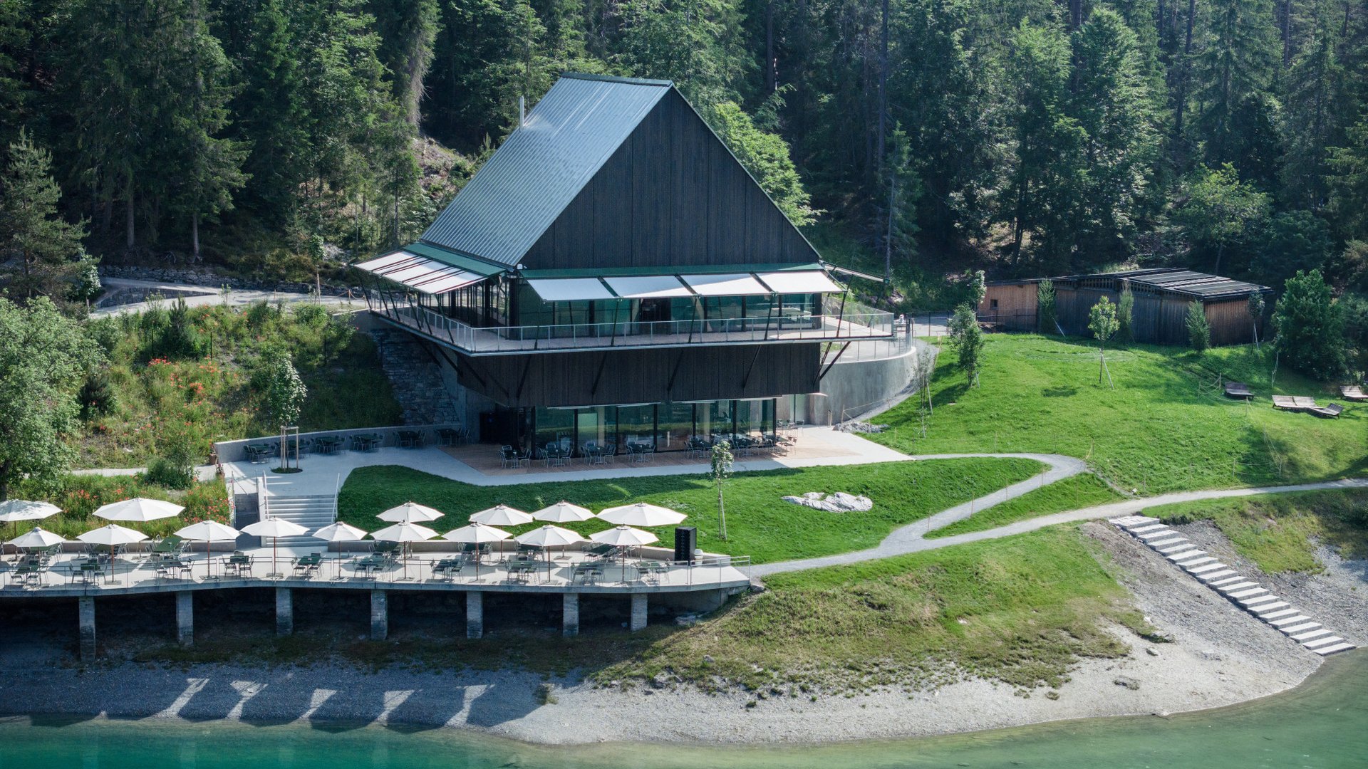 Anyone visiting Flims and taking a walk to the restaurant by Lake Cauma will discover not only a lake that’s become an Instagram sensation thanks to its striking turquoise hue, but also a truly rare and remarkable example of modern shading.