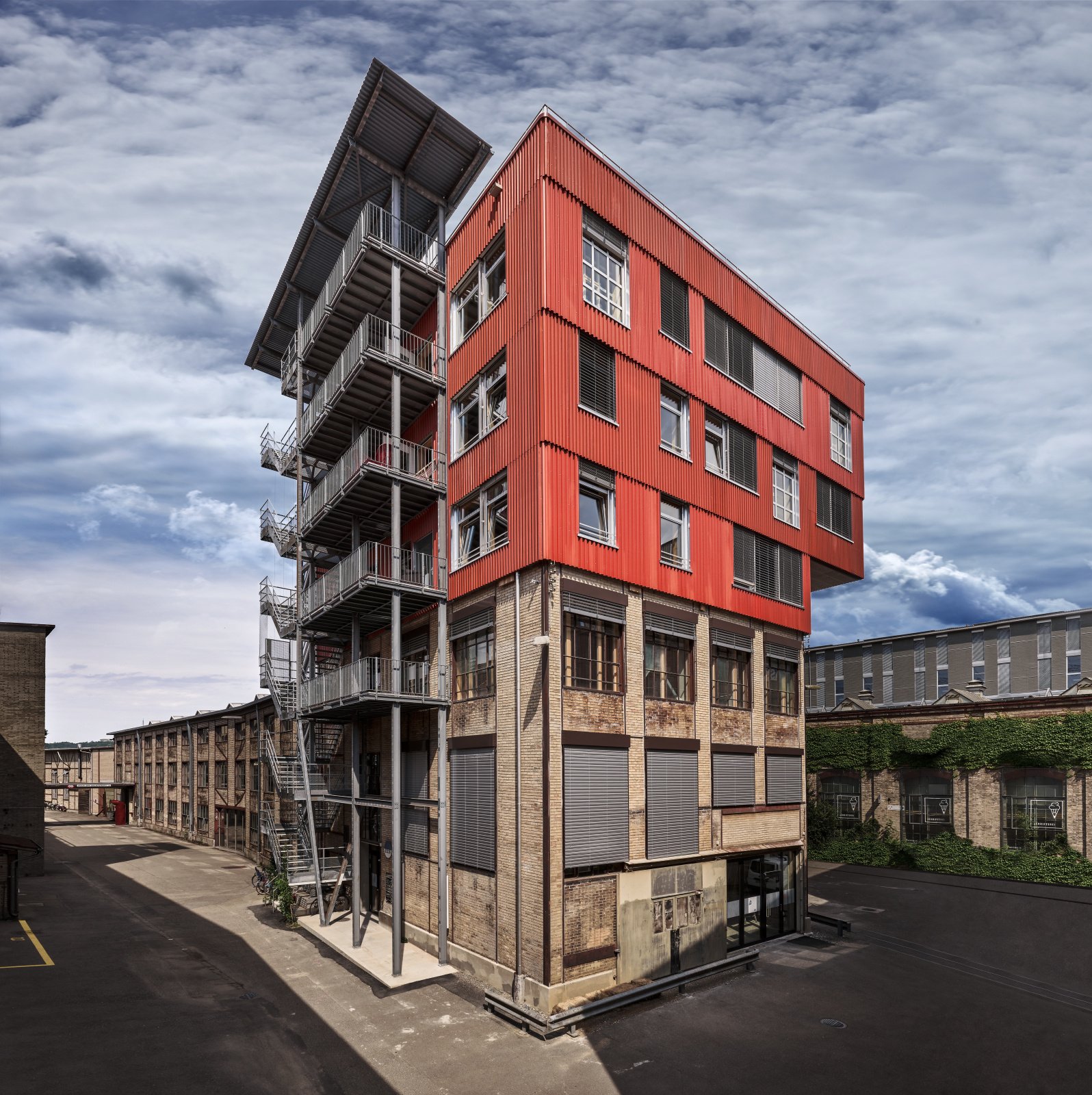 Warehouse 118 on Lagerplatz in Winterthur grew by five more floors. In addition to recycled material, the project also used natural materials such as timber, straw and clay – as they too are processed with minimal energy. Over half of the building material came from demolished buildings. The supporting steel structure, for example, once held up the Coop distribution centre in Basel. The windows, facades, radiators and wooden floors come from demolished buildings in the region of Winterthur. In its previous life, the staircase – which is over 30 years old – on the east-facing wall used to live in the Orion office building in Zurich-West, just like the 80 windows and granite slabs that were reused for the balcony floors. Unlike so-called downcycling where the materials are first re-worked in an energy intensive process, this approach reuses materials 1:1. This avoided the release of around 500 tonnes of CO2.