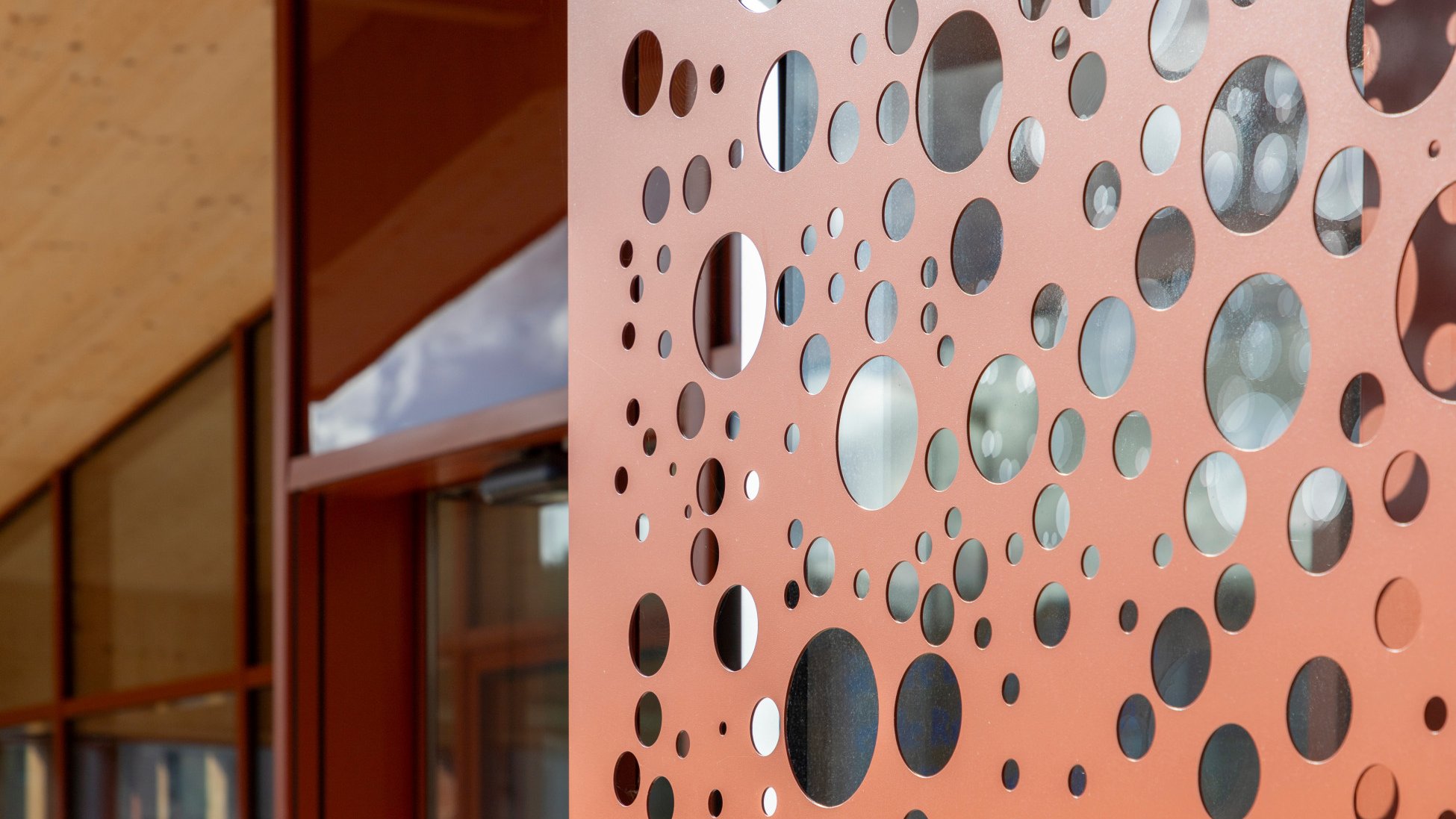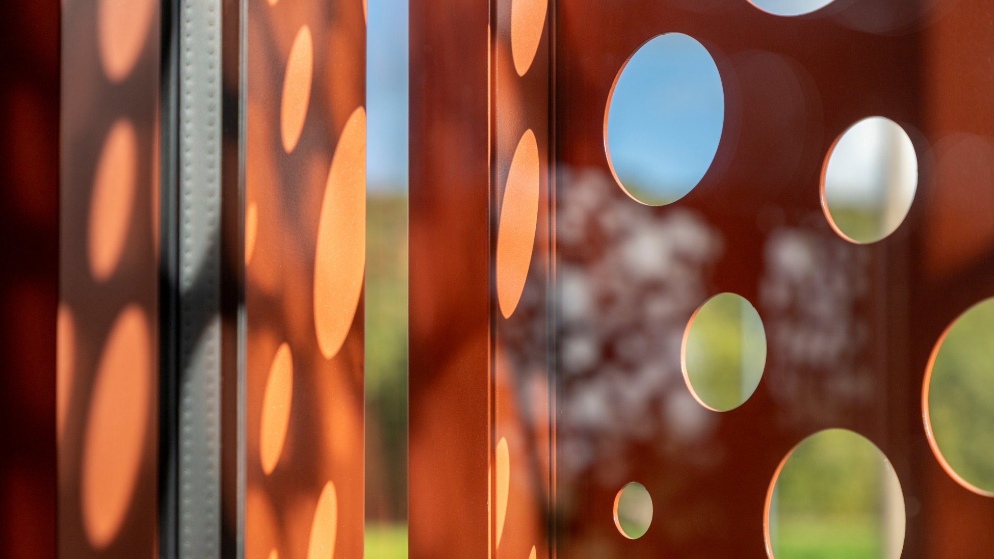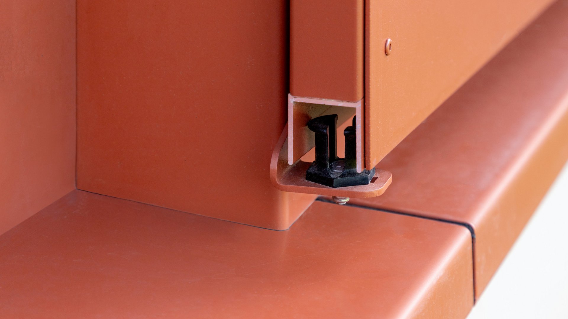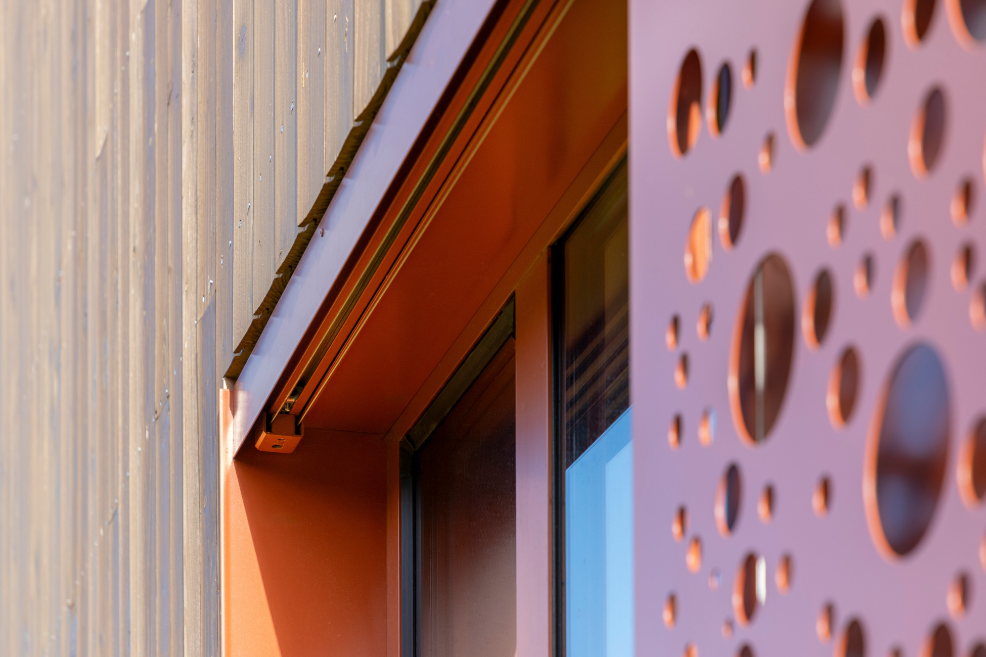 A total of 19 sliding shutters (model PL-LO), each measuring 1.40 m in width and 2.30 m in height, were carefully installed. Powder-coated in an elegant copper brown (RAL 8004), they perfectly complement the colour of the trapezoidal sheet metal roof. To achieve a harmonious overall look, the profile of the upper rail cover and the guide rails were also powder-coated in the same shade.