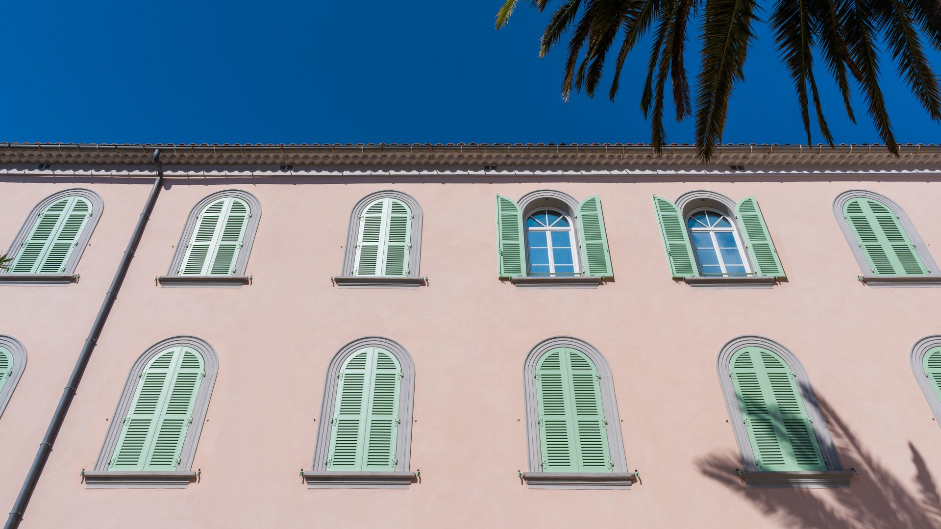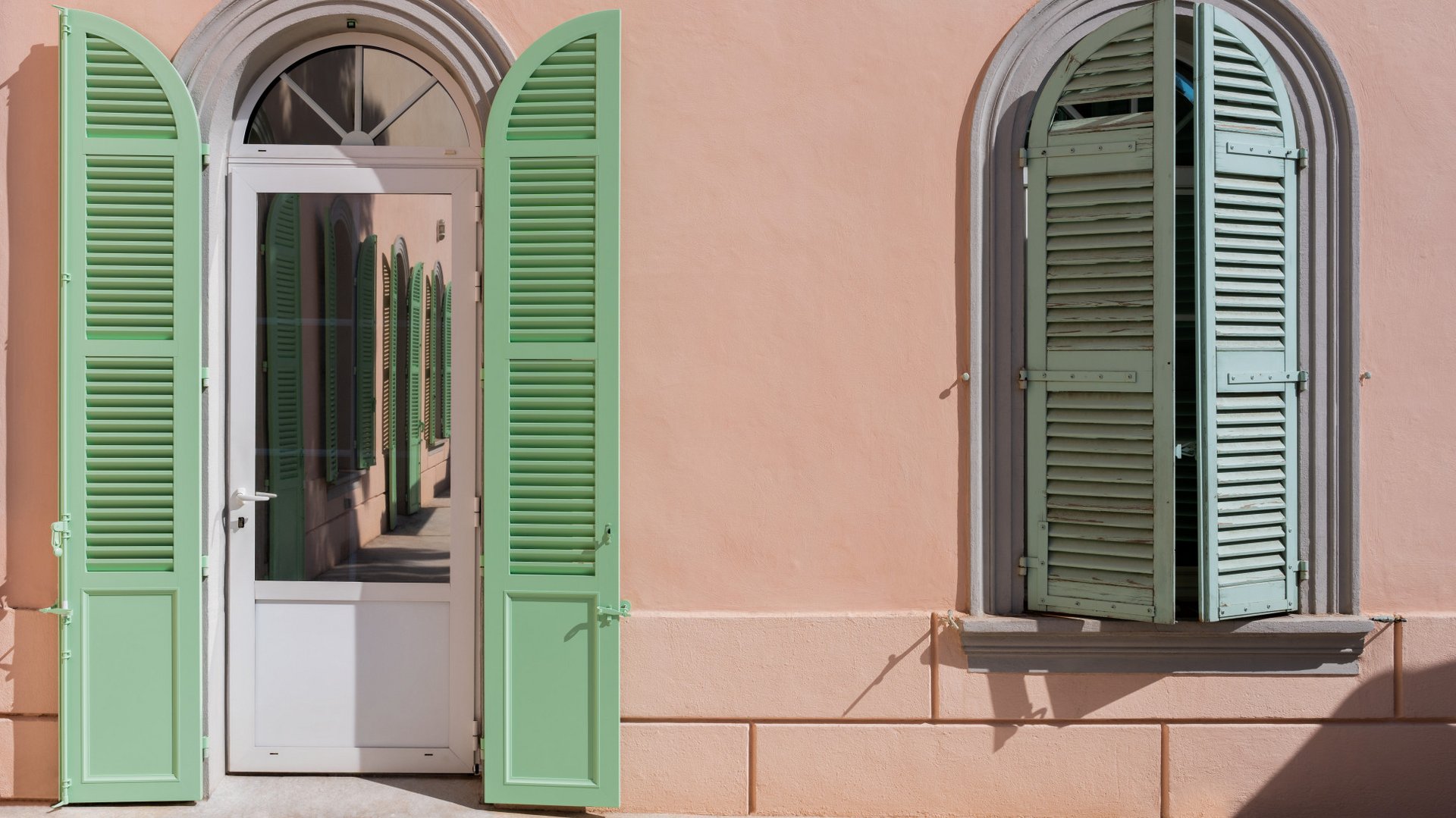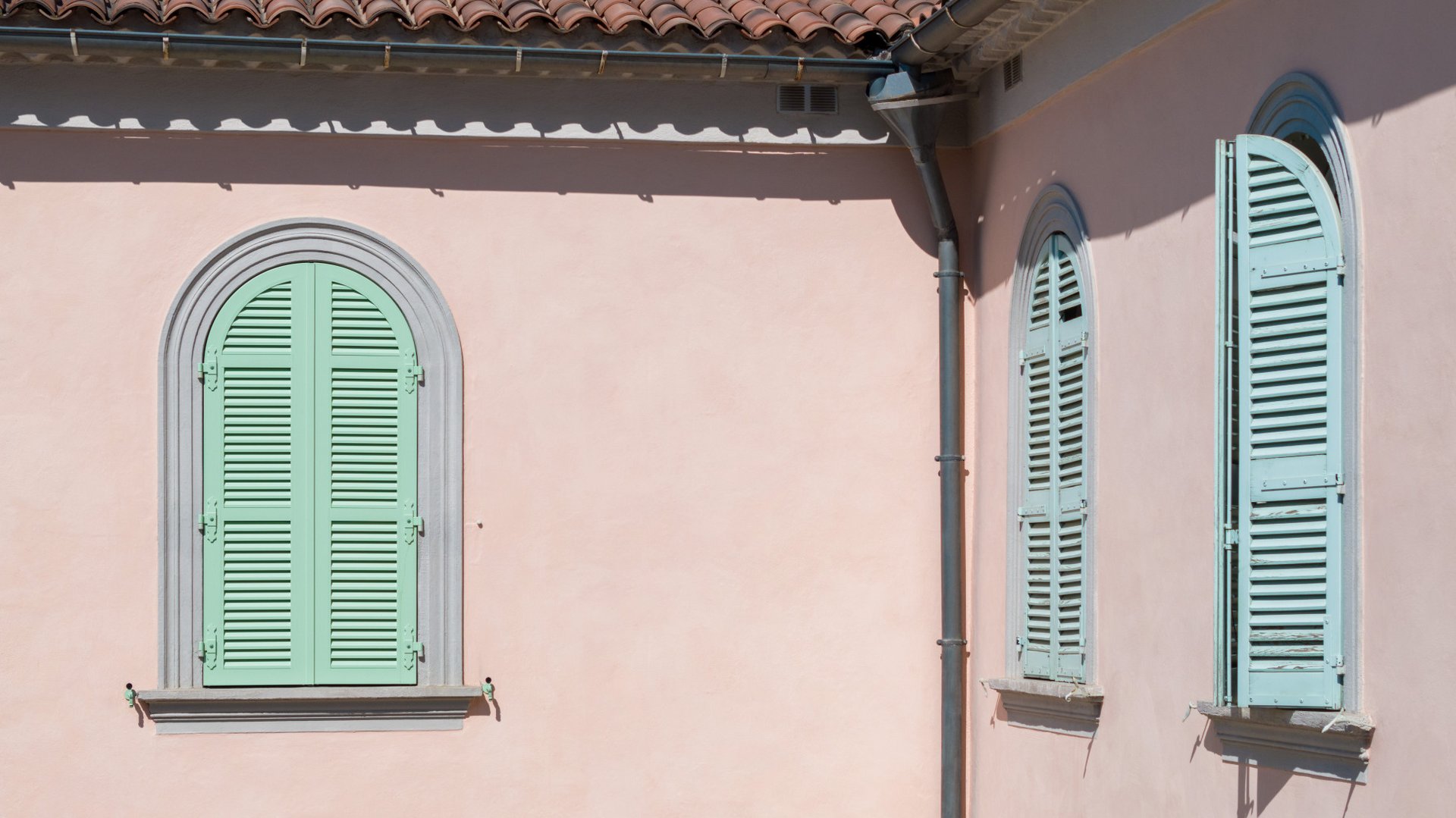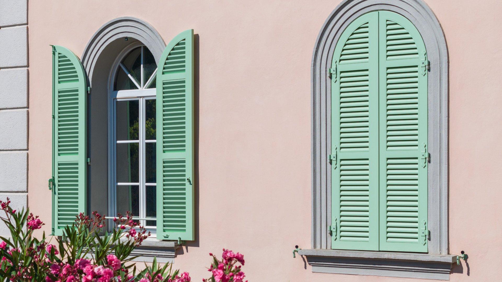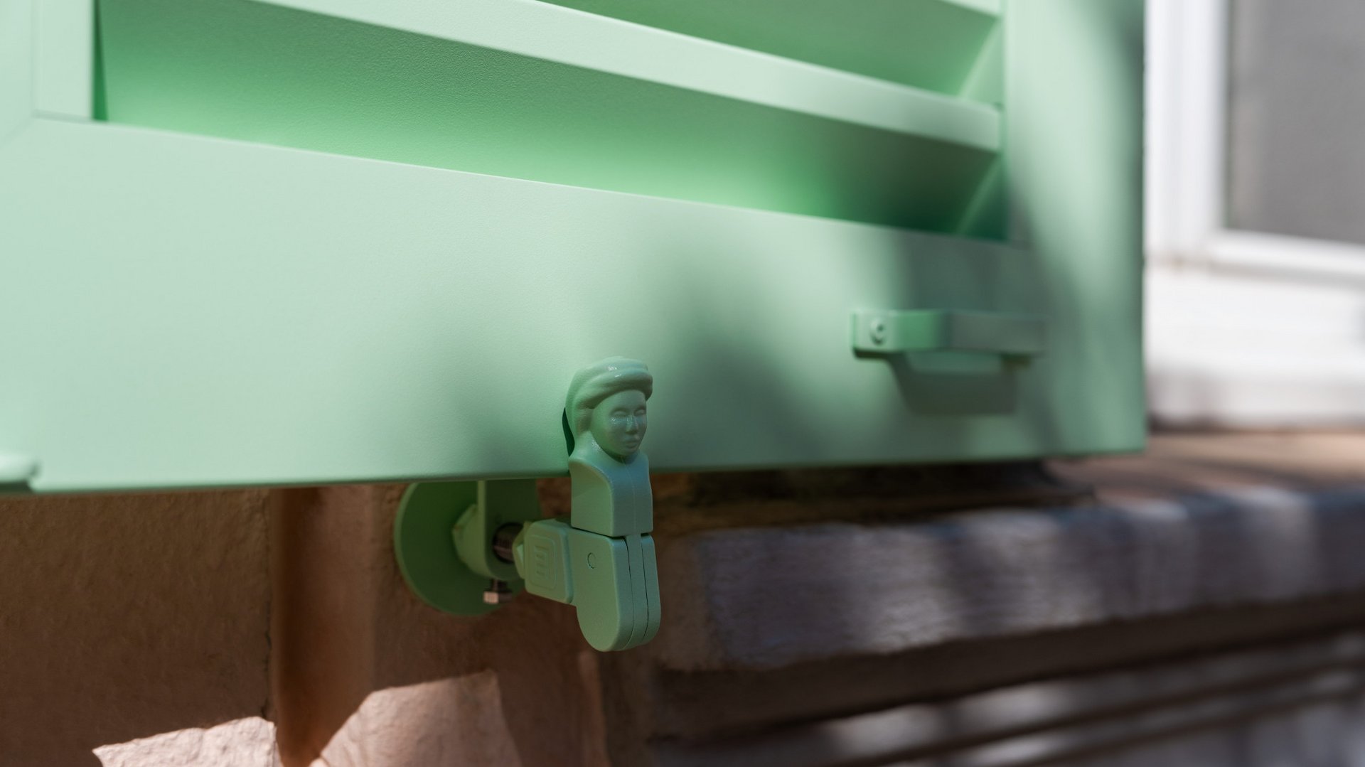 Thanks to a special manufacturing technique, it was possible to produce even arched windows and other special formats. Each shutter could therefore be tailored with millimetre precision to the respective opening with its original hinges, while the slats were accurately adapted to the corresponding curves. The solution was complemented with functional details such as a rotating catch for ventilation and an easy-to-use handle. RAL 6019 was chosen as the colour for all elements – from shutters and fittings to hinges.