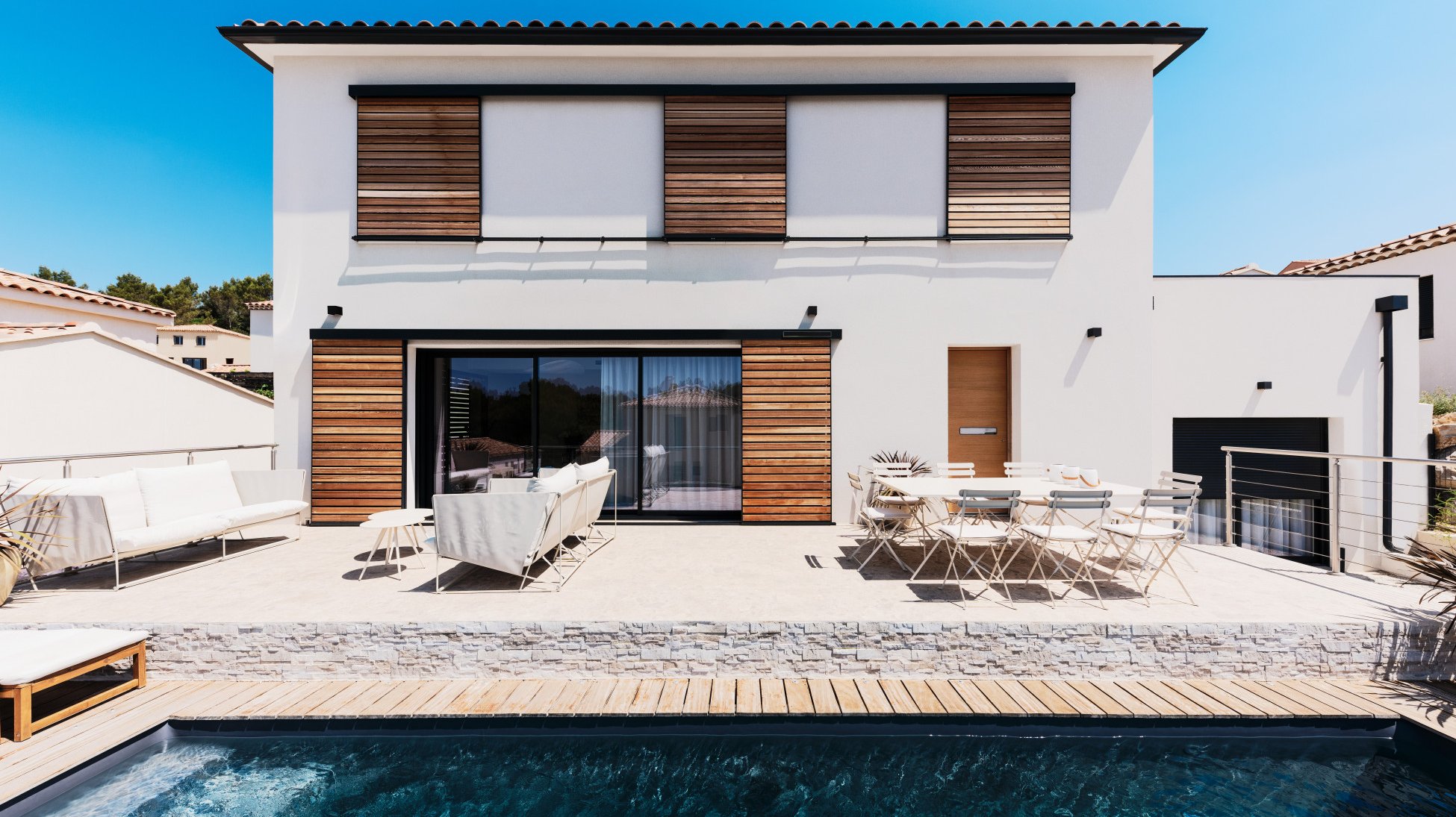 The region around Aix-en-Provence in southern France is known for its warm, dry summers and cool winters. The local climate is also marked by the strong mistral wind, which can sweep through at any time of year. With this in mind, the client placed great importance on finding a solution that would meet the region’s specific climatic conditions – one that offers the ideal balance of sun protection, wind and weather resistance, ventilation and privacy.