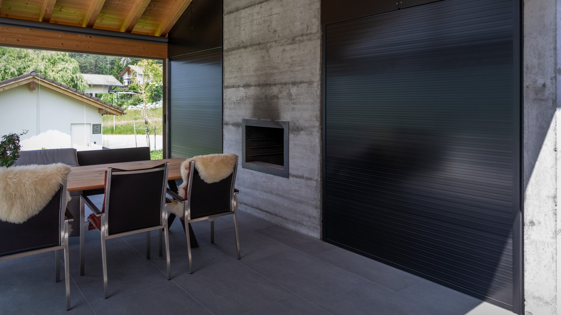 A security roller blind SRL 41 was installed in each of the unsecured outdoor areas. These components, made from extruded aluminium profiles, are exceptionally robust and virtually burglar-proof. Reinforced side guide rails with anti-lift protection further enhance the level of security. For a clean appearance, the guide rails were recessed directly into the concrete as a shadow gap. Two flush-mounted triangular powder-coated aluminium covers create a visually cohesive top section that integrates harmoniously with the façade.