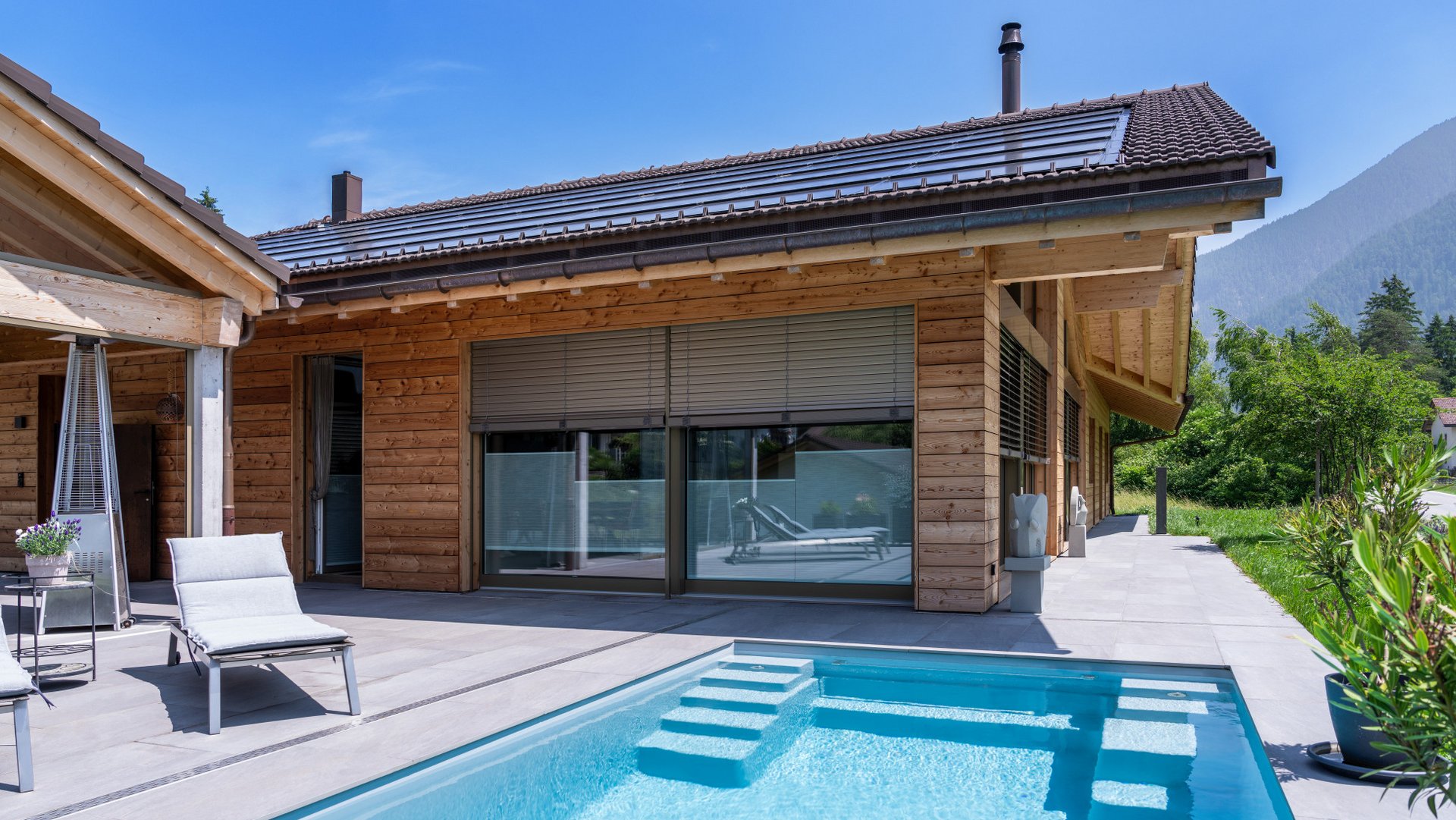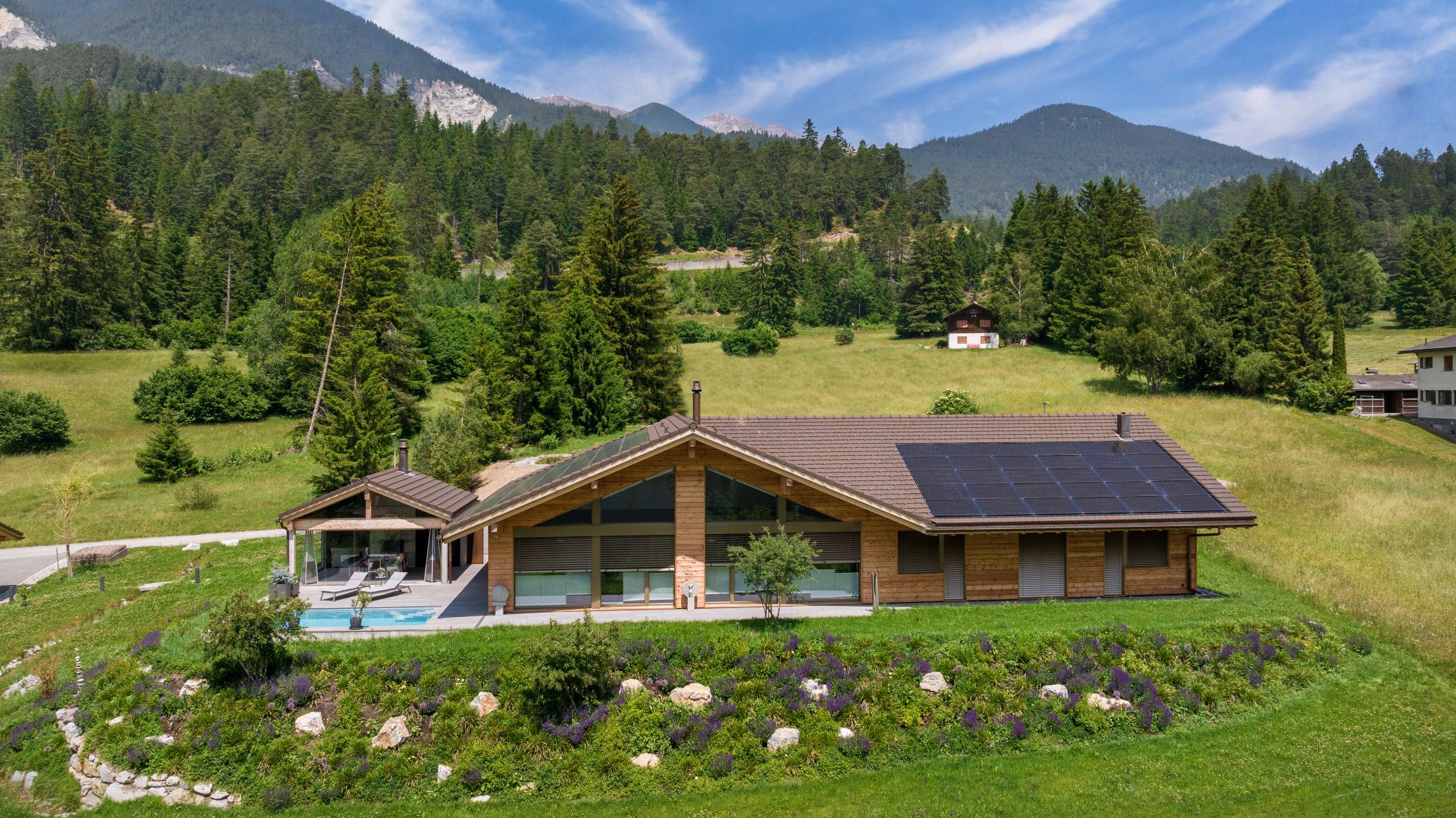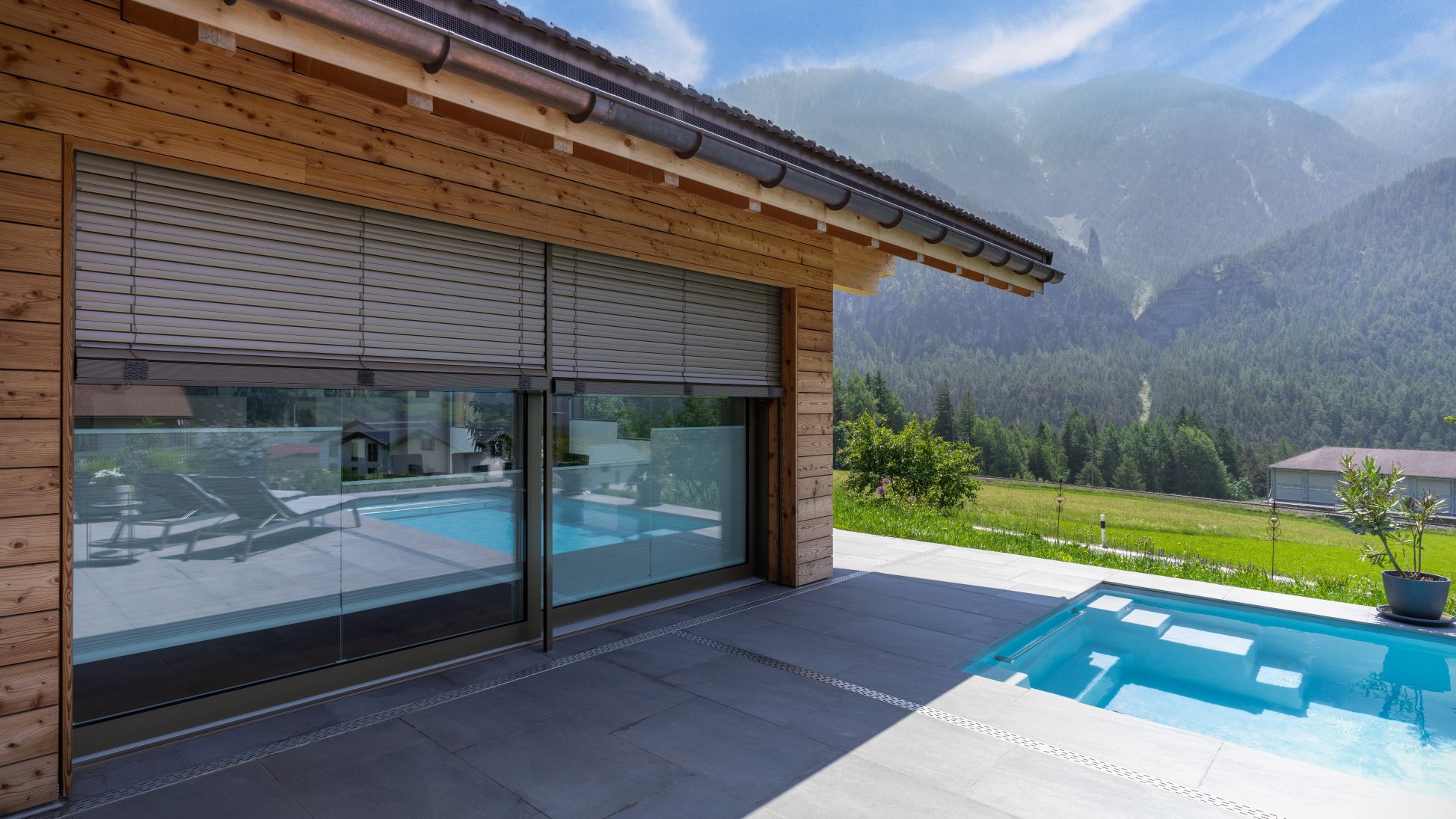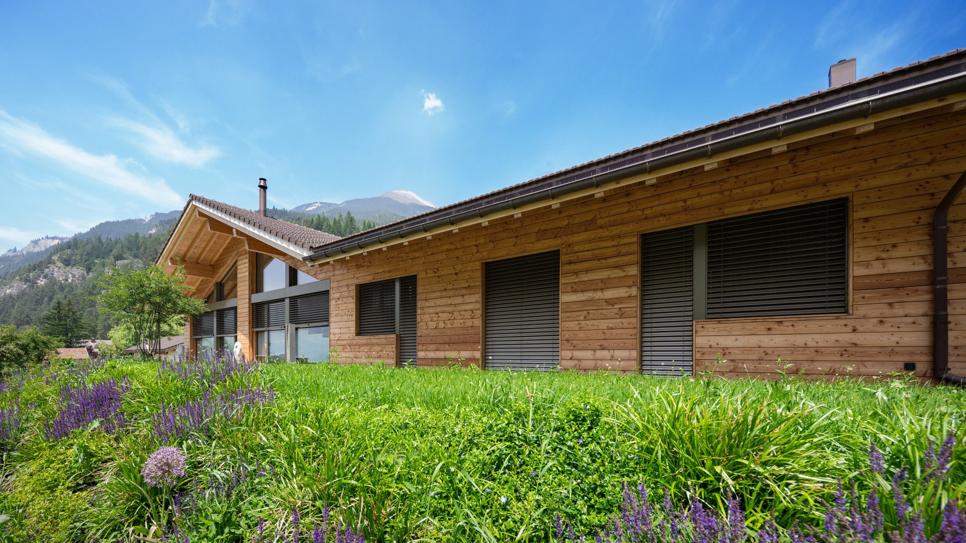 In Surava, a picturesque village in the Albula district of Grisons, at around 1,000 metres above sea level, Lipp AG has completed a high-quality new construction that blends into the alpine landscape: a generously designed single-family home featuring a thermally rear-ventilated façade made of concrete, brick and larch cladding. Schenker Storen was brought on board early in the detail planning phase to design and realise shading and security solutions.