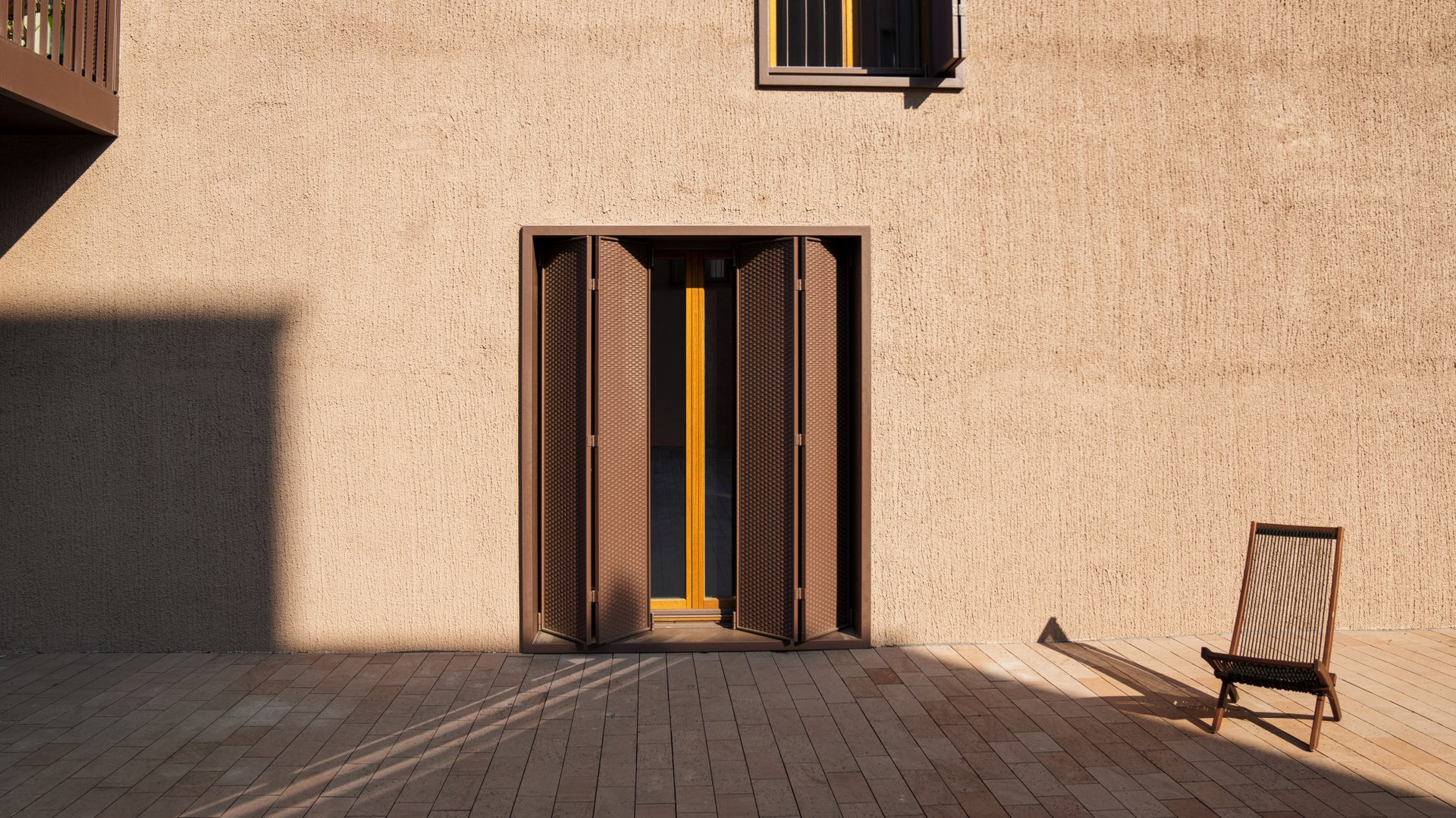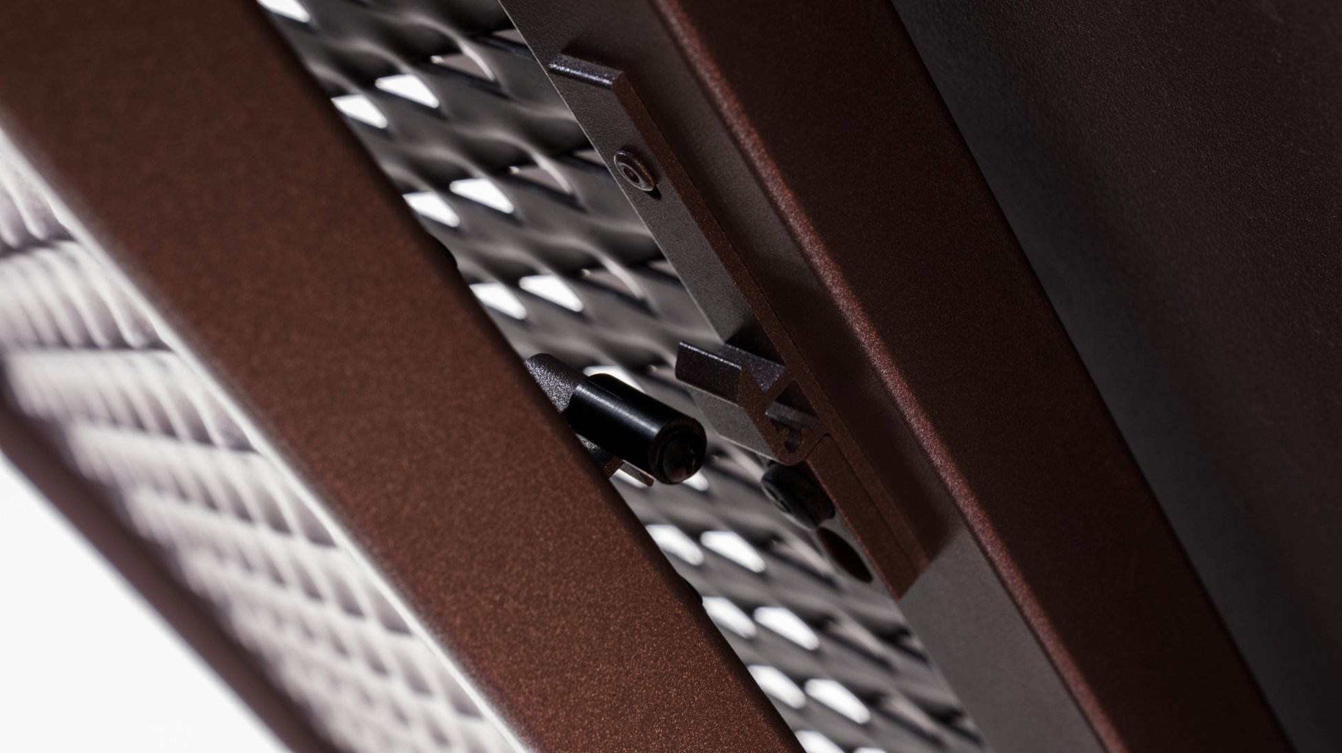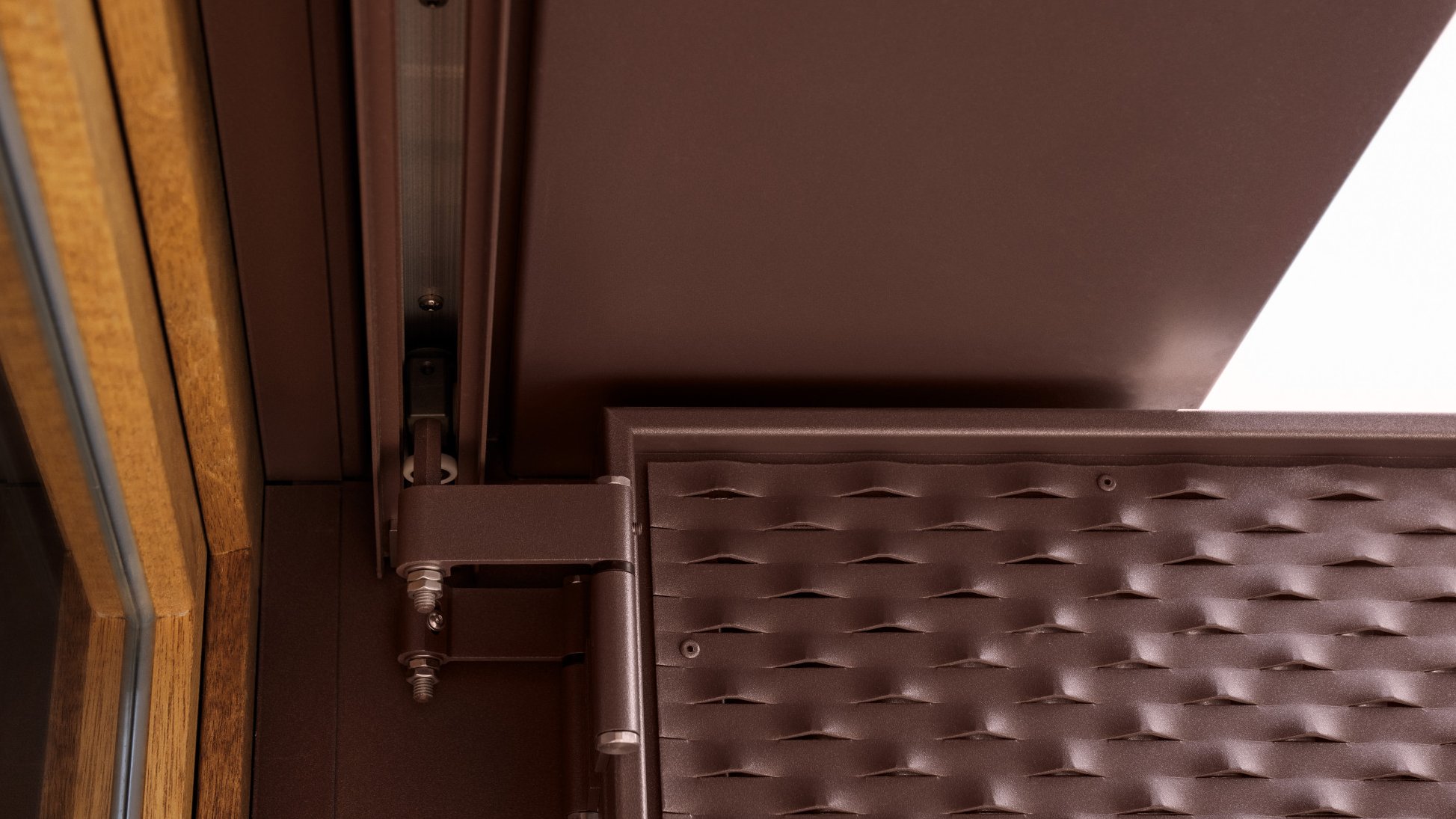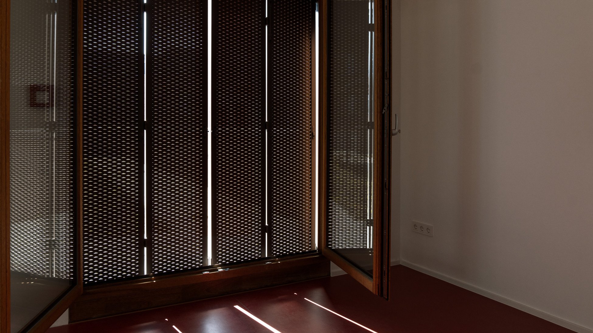 The modern wind, weather and sun protection solution made of aluminium in a special colour the IGP-classic 591T (copper tone) can be easily opened and closed like an accordion, without a large opening radius, and it folds away neatly in the soffit making it extremely space-saving. A successful blend of two models of folding sliding shutters, 502 in total, were installed to create a pleasant net-like transparency with the additional bonus of a sleek metal filling to ensure complete darkening, especially for the sleeping quarters. In addition to meeting the highest demands in terms of aesthetics, the fine meshes of the stretch grilles measuring 62x25x9.0x2.0 mm don’t just provide conditions for the ideal room climate, they also creates atmospheric lighting conditions that stylishly underscore the ambience of the interior spaces.
