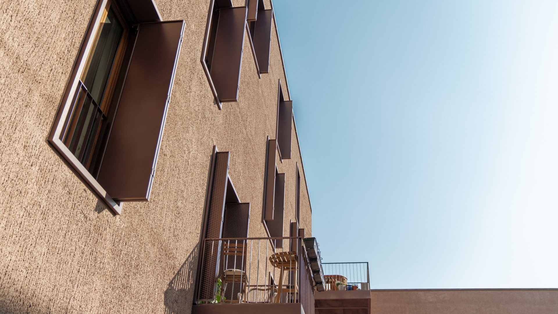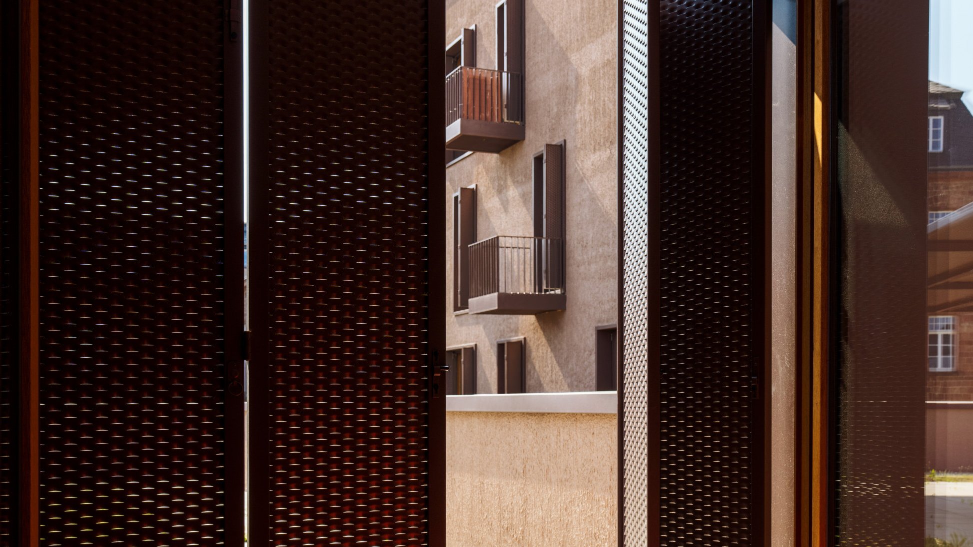The edging mounts and folding sliding shutters made of aluminium that frame the window openings freely positioned in the facades stand out in contrast from the walls made of Poroton bricks, and give the facade an unmistakably unique look. Integrating the 4-sided metal frames into the buildings with modern folding sliding elements made of aluminium was a major challenge. Thanks to our many years of experience, we were already able to provide significant support in this regard during the planning phase.