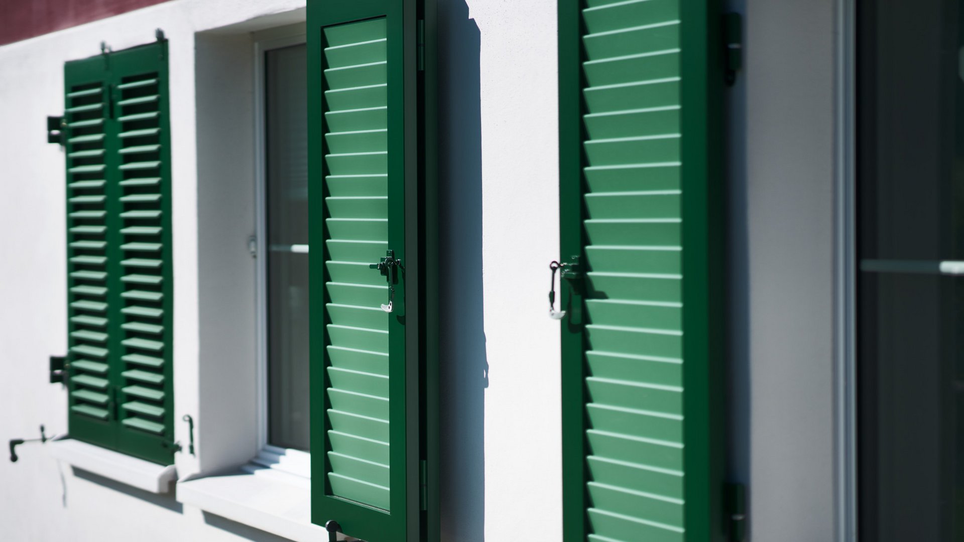 Because the exact dimensions and placement of the windows only became evident once the facade was completed, the bespoke shutters could not be ordered until later. This made scheduling and the implementation process a little more complex. Ensuring that the production capacity for the shutters was available precisely when needed became a critical factor. This involved coordinating their production, powder-coating, delivery and installation as swiftly as possible in order to meet the deadlines. In total, 45 aluminium shutters, featuring a two-tone design with a solid surface instead of slats, were commissioned for the project.