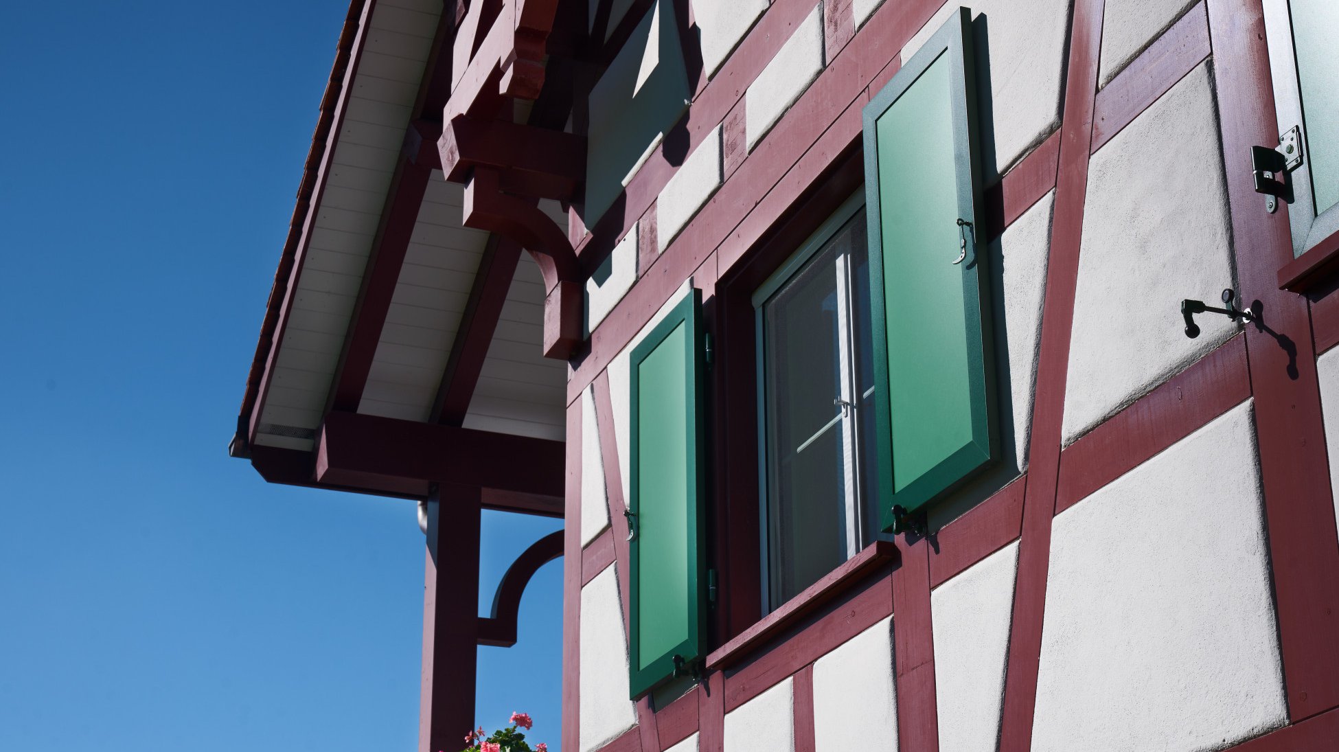 This unique timber-framed house is nestled in the picturesque community of Dorf, situated between Winterthur and Schaffhausen. At first glance, it exudes the charm of a centuries-old property having recently been meticulously renovated as a listed building. It is only upon closer inspection that the remarkable truth emerges – this is a new construction. Yet, it presented an exceptional challenge for the site management, given its location in a zone safeguarded by regulations to protect the image of the village. Schenker Storen was commissioned by the building owner, Landolt & Co Totalunternehmung RDN, with providing the shading solutions. Being able to supply "old style” shutters played a pivotal role in securing the contract – a demand Schenker Storen was able to seamlessly fulfil through its affiliated partner within the Group. The challenges inherent in this project primarily revolved around precision – with regard to both the installation and timing.