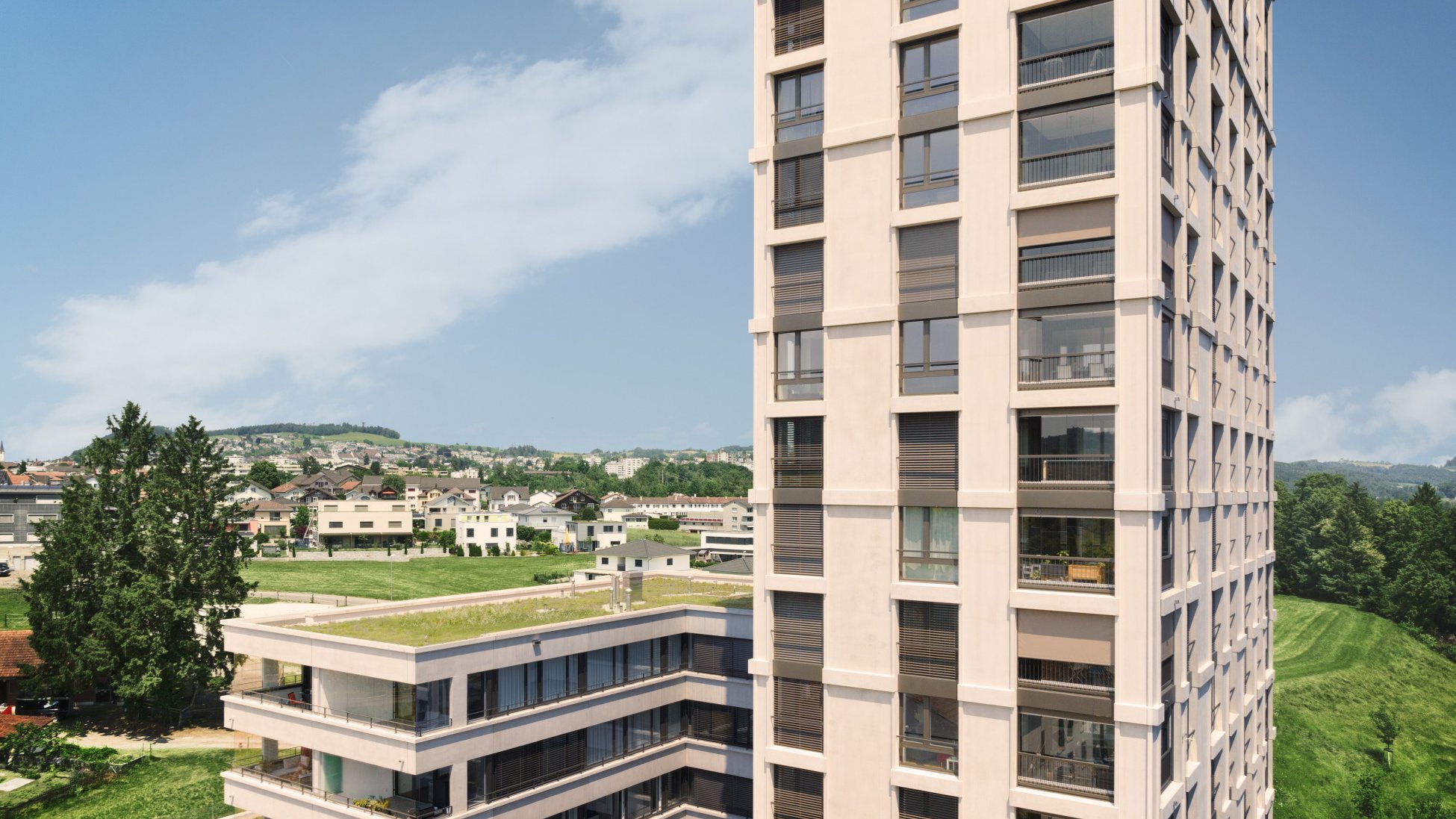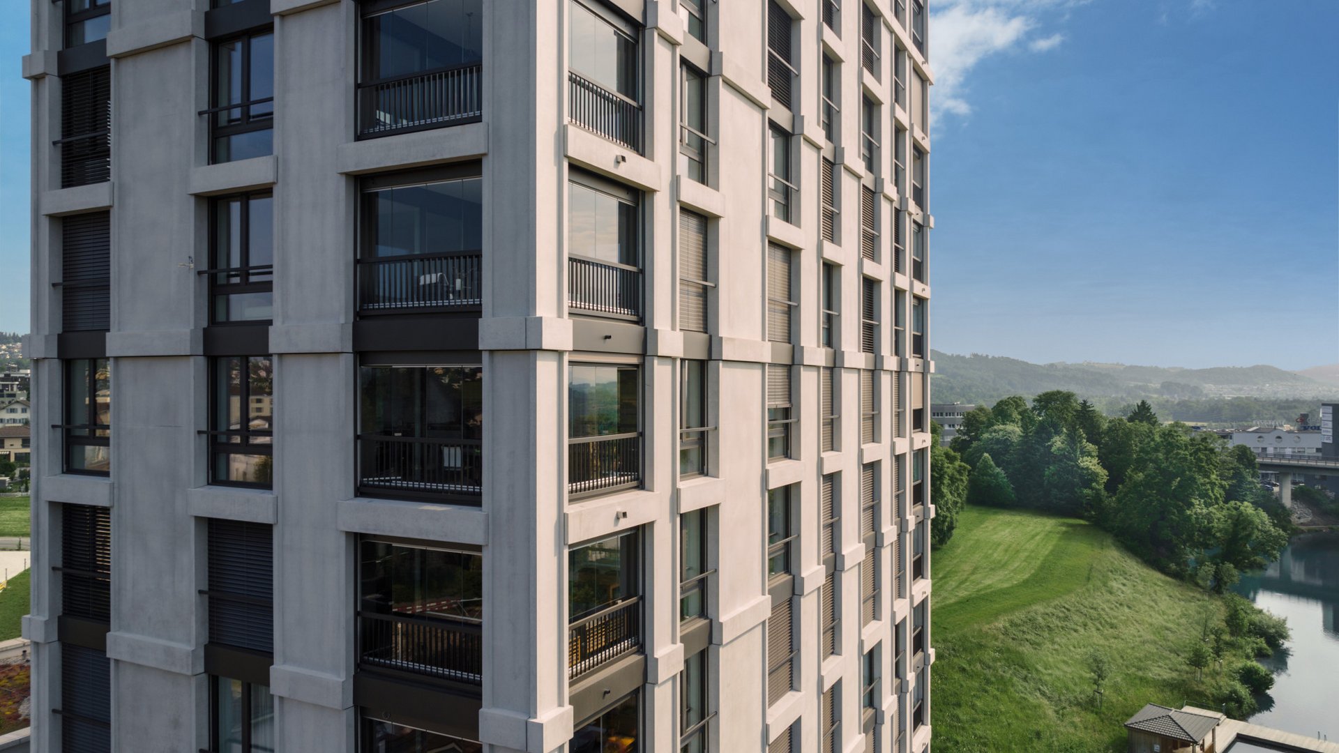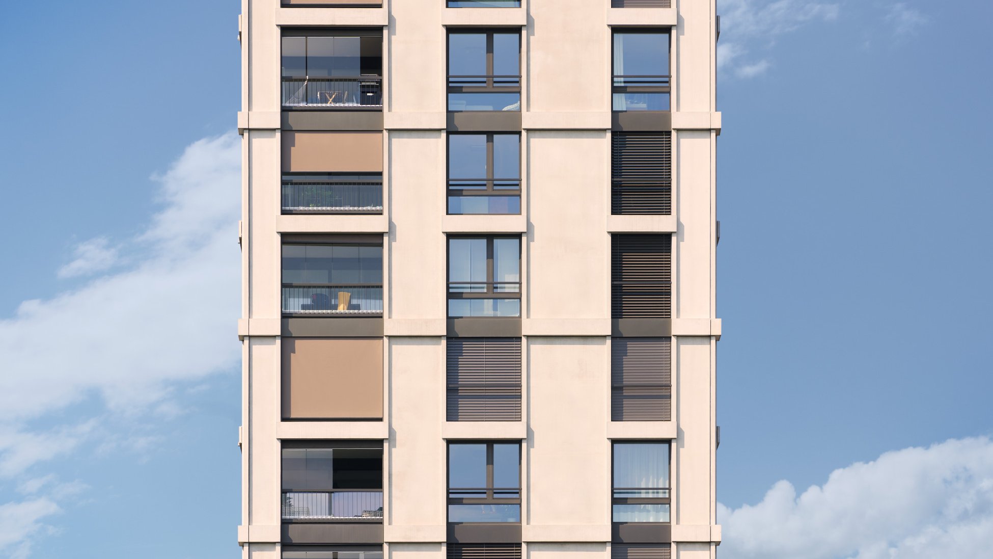 The high-rise block of flats has now become a lighthouse project, not only for the surrounding area, its architects and the respective authorities, but also for Schenker Storen who were commissioned with providing the shading and were able to execute the project on schedule with a high level of professionalism. In addition to the tasks that Schenker Storen is used to carrying out on a daily basis, the high-rise block of flats also presented them with some interesting challenges – most notably in the areas of logistics, aesthetics, security and materiality.