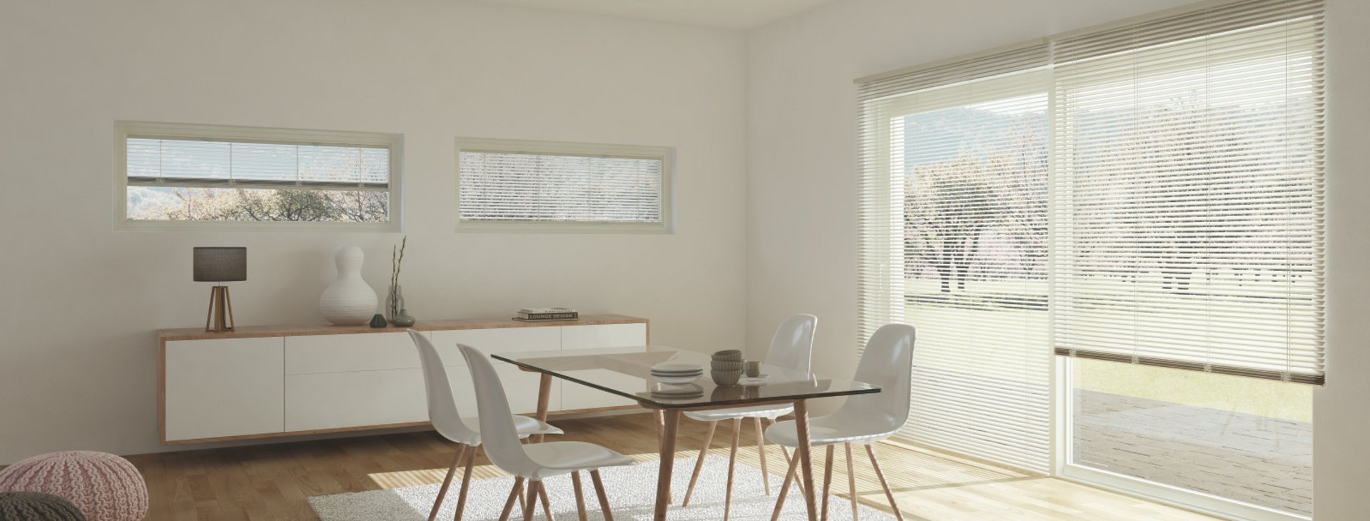 Our indoor slat blinds, also simply known as blinds, are a true classic and their story began in Paris over 200 years ago. They regulate, direct and control the amount of natural light, protect against prying eyes and all the while allow a clear view to the outside. The sight and glare protection can be smoothly and freely adjusted at any time with different methods.