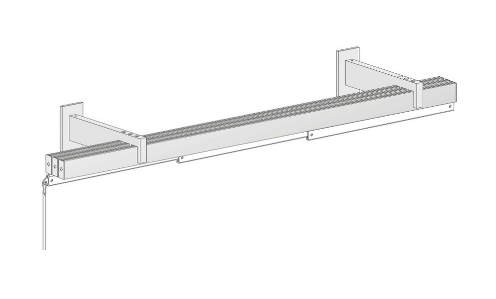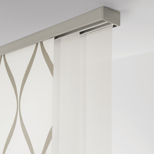 With this variant, the track is attached to the ceiling or wall with several supports mounted at intervals. When mounted on the wall, the support creates a clearance between the area to be shaded and the panel curtain, giving the system an elegant and effortless effect.