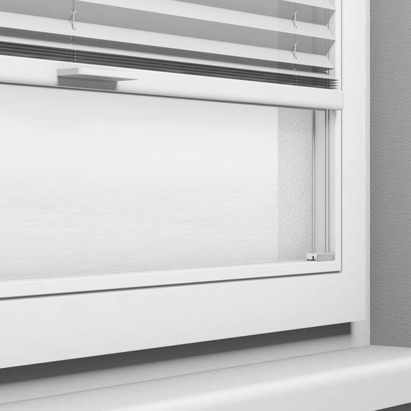 Depending on the design variant, our pleated blind can be mounted on the wall or ceiling. Here the system is mounted in front of the window and covers the entire window recess. There are various fixing systems available, such as clips and clamping shoes or angle brackets and glazing bead supports for a front assembly. Using clamp and glazing bead supports, our pleated blind can also be installed directly in the glazing bead or on the window sash. Where installations have an overhang, for example in rented apartments, the blind can be mounted without any drilling using adhesive sets or window clips.