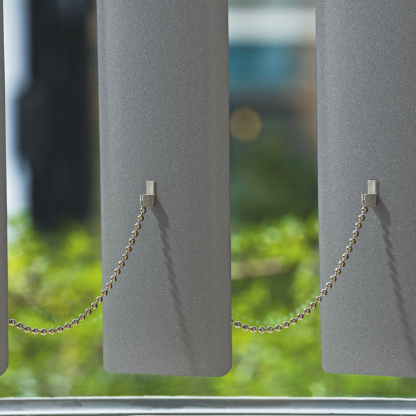 Aluminium: These chic vanes made from aluminium are a striking feature with their subtle shine, solid form and smooth material. They create a uniform look and are easy to wipe clean. The aluminium vanes are a great choice for both residential and commercial properties.