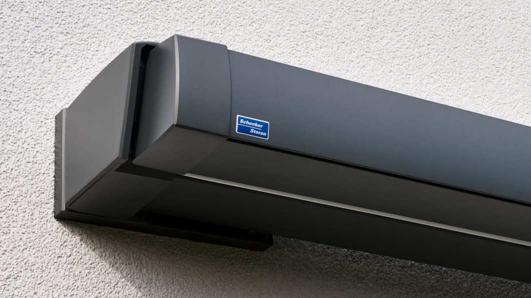 The cubic cassette awning is attached on sturdy mounting brackets. These can be secured to the front-facing side (installation on the wall) or tilted 90° so it can be secured upside down on the ceiling. Each model comes with its own rafter mount so it can be installed on the rafters.