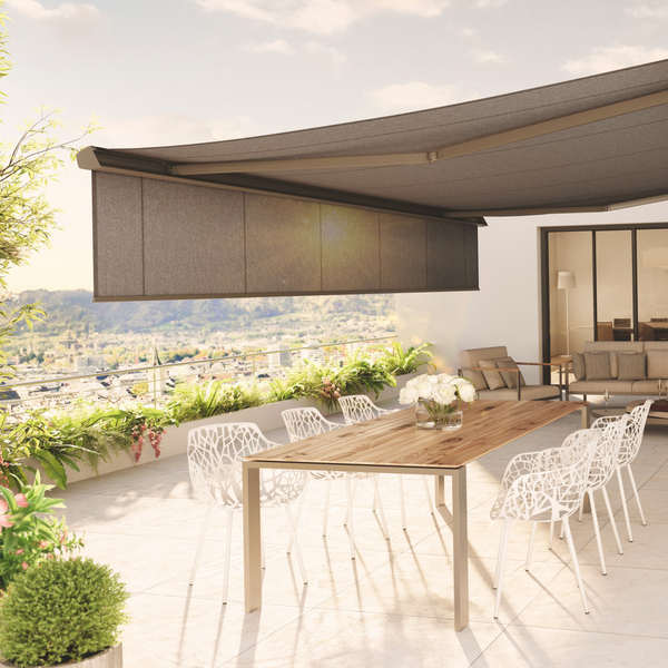 There is a whole range of options on offer for the cubic cassette awning so it can best satisfy your needs and desires. Countless fabric designs and a wide selection of colours for the frames help you create a beautiful look for your terraces, balconies and garden seating areas. For even more comfort, our products can be controlled using our clever Smart Home solutions. With our wide selection of sensors for the sun, wind and rain, you can be assured of a safe operation in perfect synch with your product. Always with you: Swiss quality.
