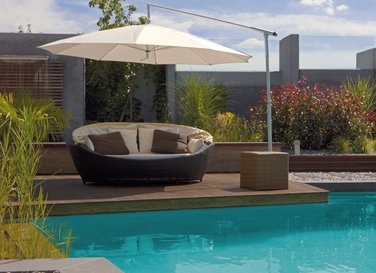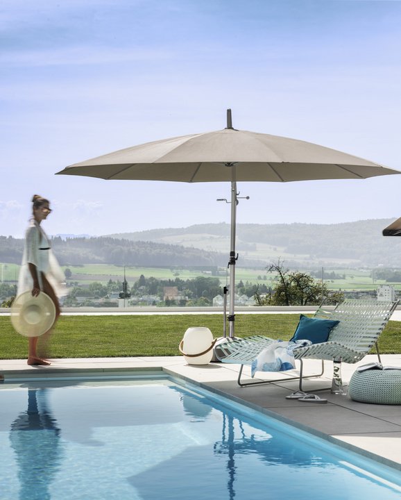 Sunshades from Schenker Storen provide versatile and elegant shading for your garden, balcony and terrace. Their colourful, high-quality fabrics and contours give shaded areas an unmistakable, heavenly holiday feel. They provide effective protection against UV rays and their appropriate covering makes them weather-resistant.