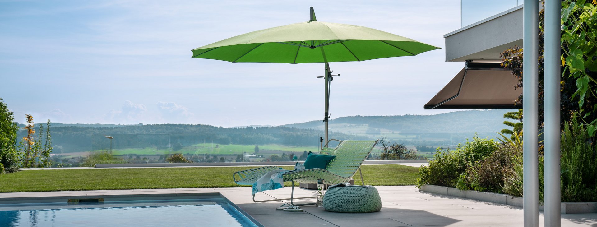 There is an interesting choice of options on offer for the cantilever hanging parasol, so it can best satisfy individual wishes and requirements. Countless fabric patterns and features accentuate the charming stylish design of terraces, balconies and garden seating areas.