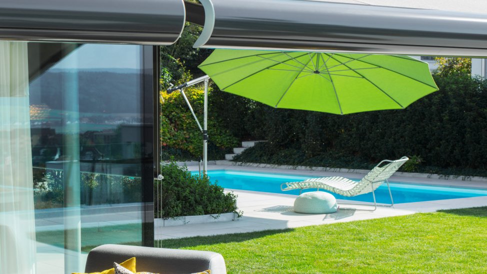 The rectangular sunshade combines extensive sun protection with an elegant design and modern profile, available in the following dimensions: 2,1 x 3,0 m.