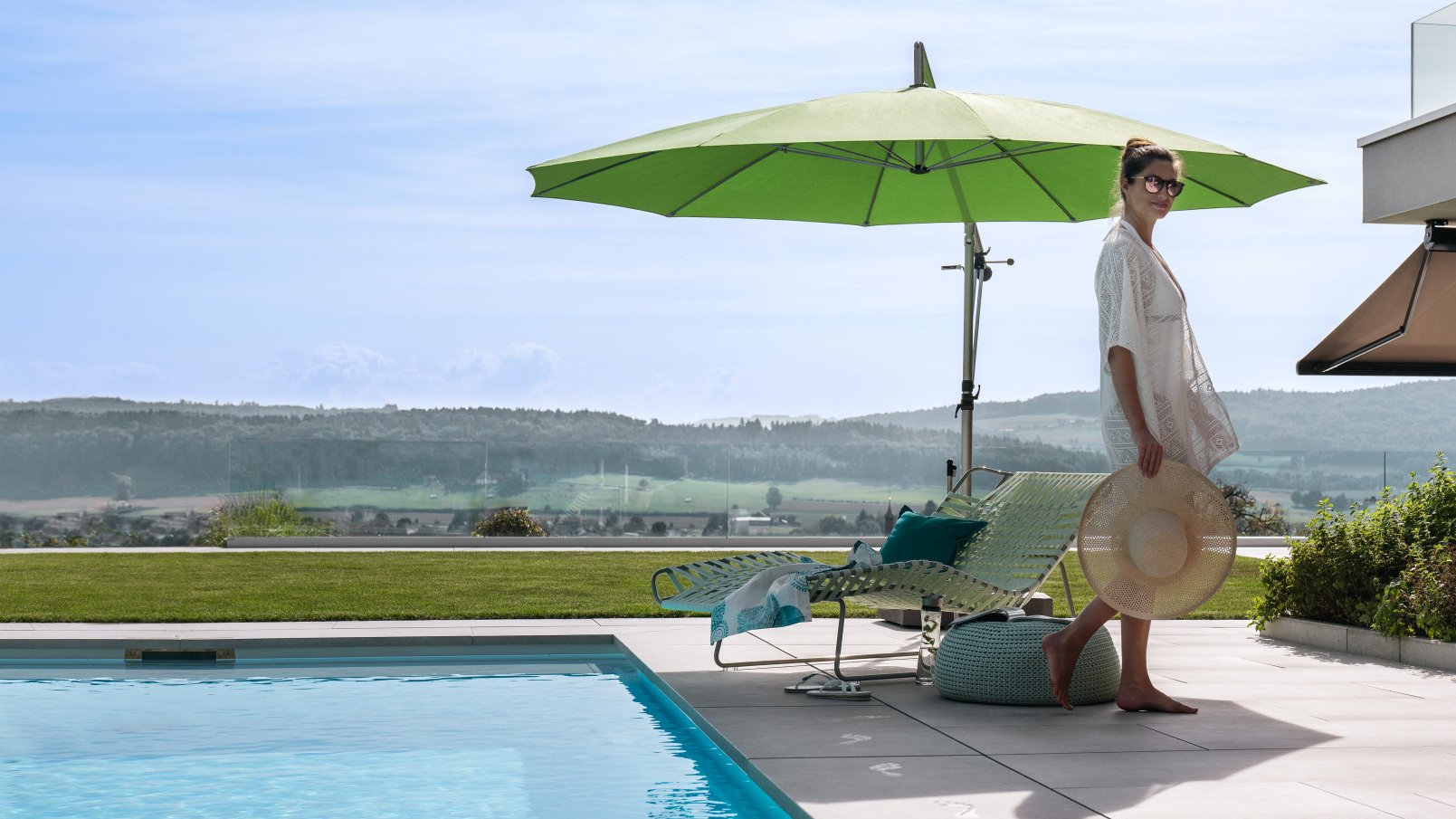 The free-floating cantilever hanging parasol is our solution for creating shade wherever you want, as it is mounted to the side of the shaded area rather than in the centre. Tilting the umbrella to the angle you want depending on the position of the sun is child’s play. It offers more room for wherever you would like to sit in your garden, balcony or terrace.