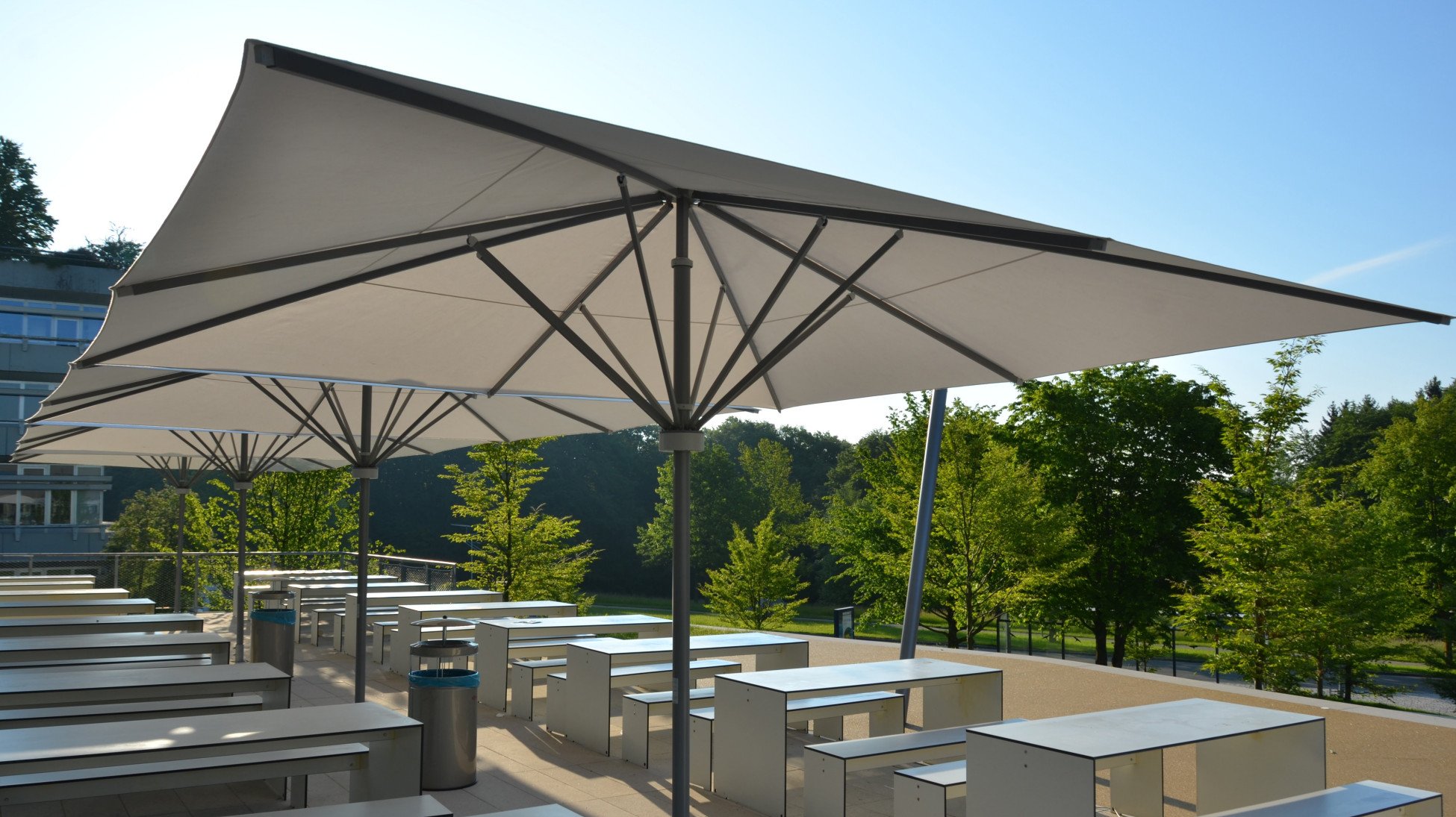The parasol Schattello is the quintessential choice for those with the highest expectations for quality, stability, and design. Specifically developed for professional use, it provides dependable shading for large expanses – whether in dining establishments, at high-profile events, or in public areas. With its robust construction, practical telescopic pole, and a wealth of customisable options, the parasol Schattello represents the ultimate solution for demanding outdoor applications.