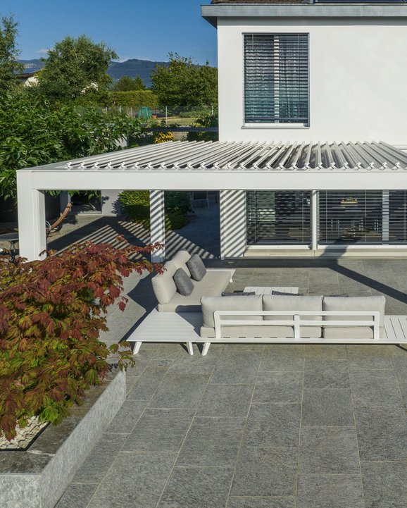 With their LED lighting and numerous other comfort options, our terrace roofs and pergolas create a relaxation oasis for any time of day and pretty much any time of year.