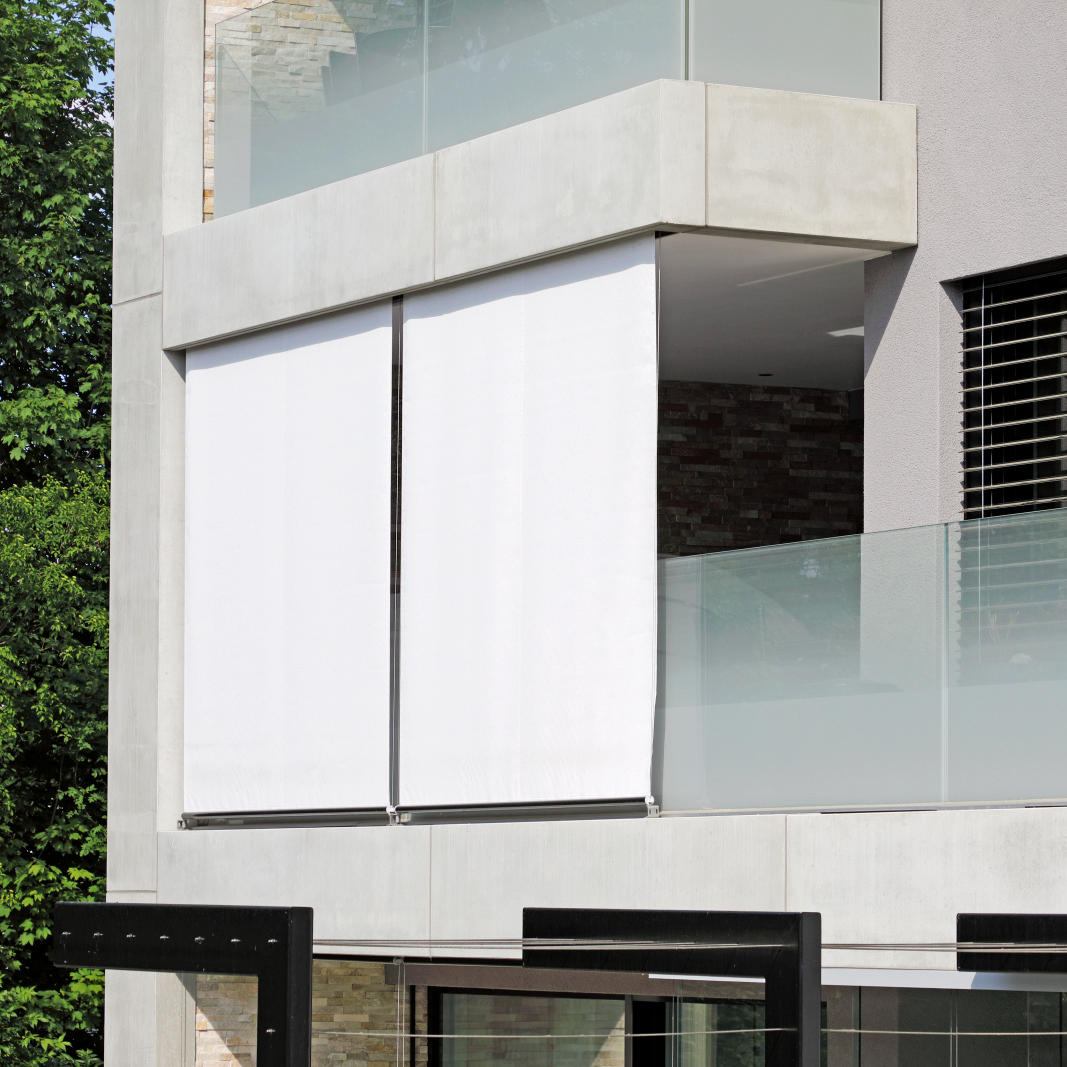 The vertical fabric blind is our classic choice for discreet, vertical sun shading on facades, loggias and balconies. It offers huge design potential for facades and fits in beautifully with different building situations. It is suitable for small to medium-sized window fronts and is mainly used in single-family homes and apartment buildings.