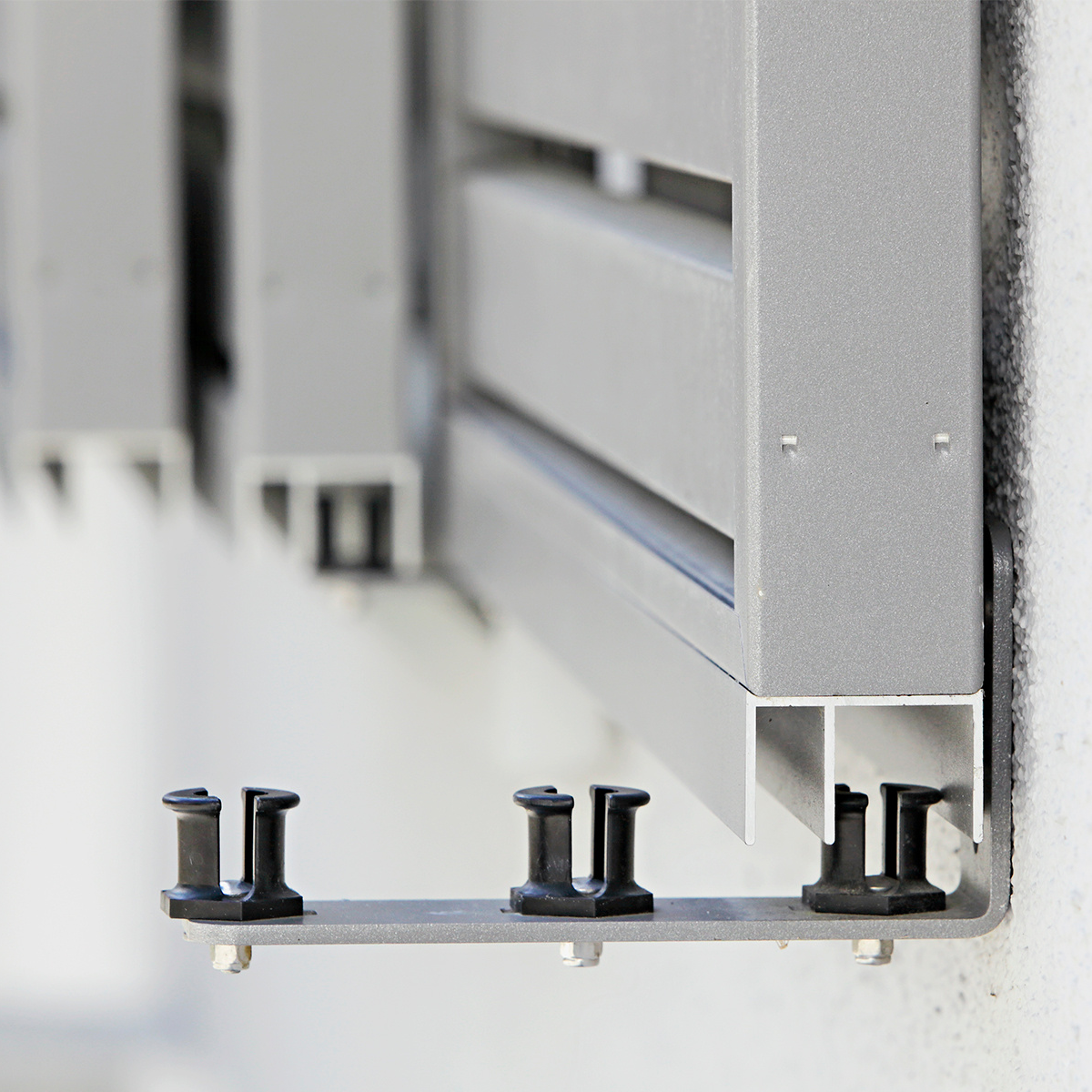The closed model only consists of closed fillings that are made of either elements that look like slats or from aluminium panels. The way the surface area is divided up depends on how many slat frames there are. There are also cross and batten or Z bar panels as additional design elements.