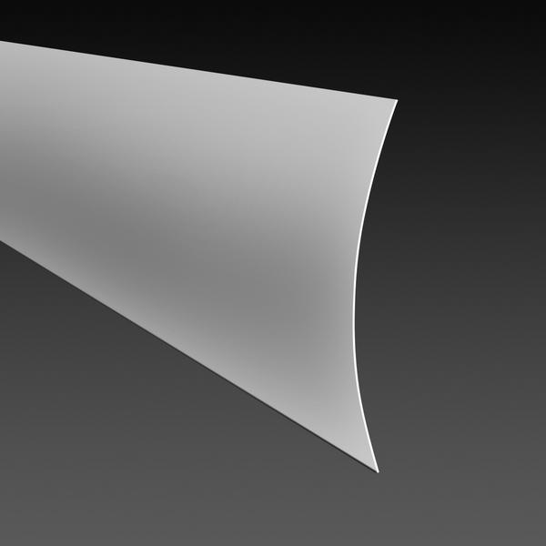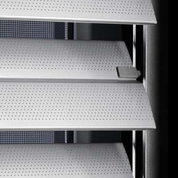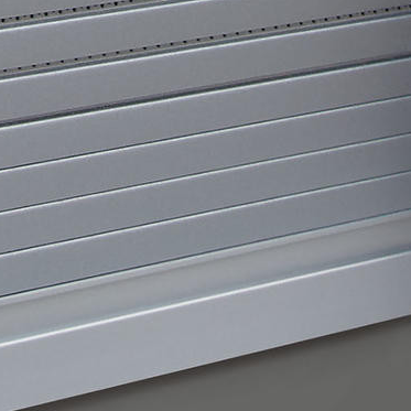 Flat highly flexible slats: Slat width 100 mm and slat thickness approx. 0.32 mm. The special indentation in the cord guide press cuts guarantees the slats will seal tightly and remain fully retained down the sides. The slats are guided smoothly thanks to the plastic-coated wire cords.