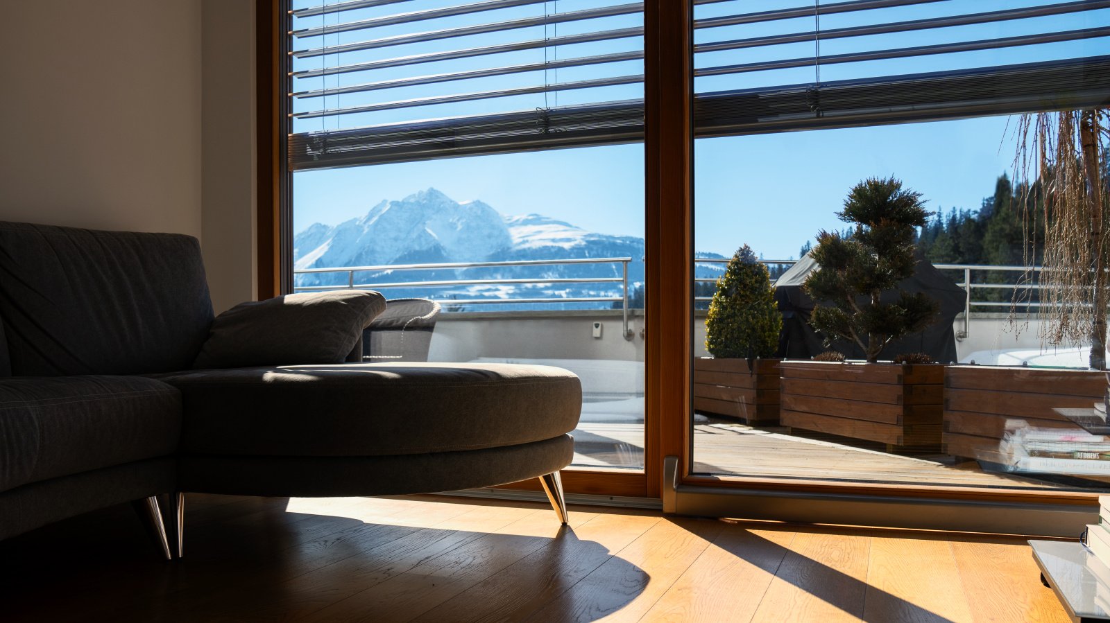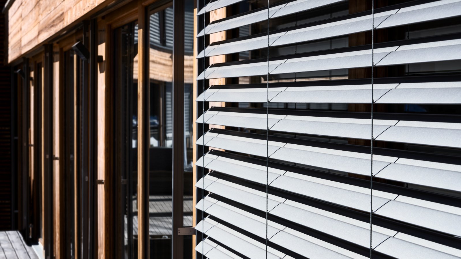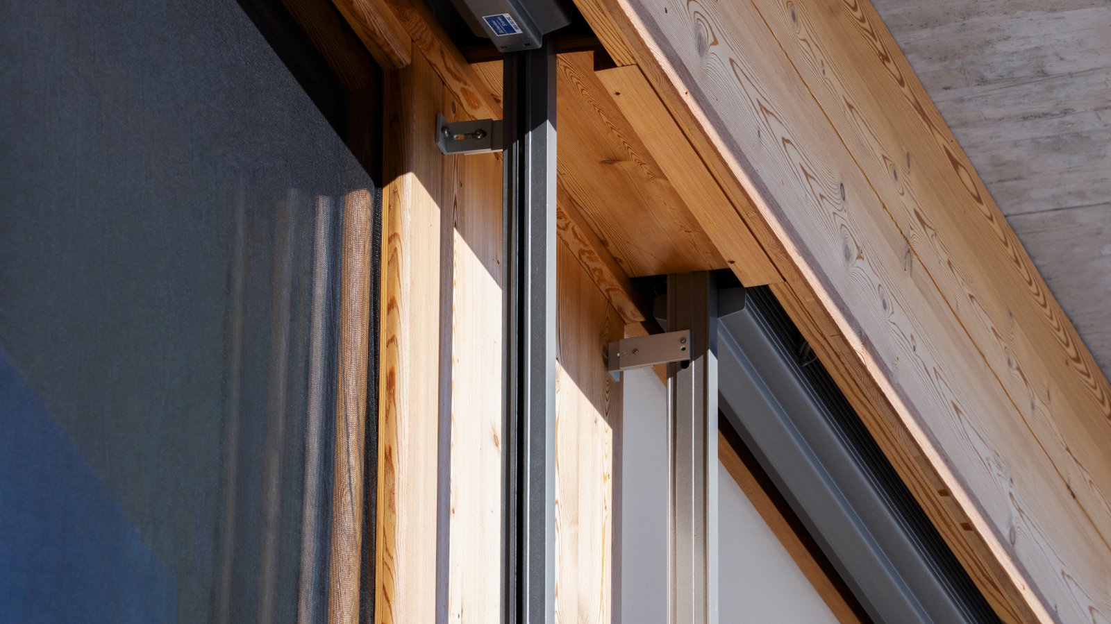 The metal compact venetian blind MV 90 is used to complement the luxury look of the apartment – a sophisticated shading system capable of meeting high demands. The high-quality, low-maintenance toothed belt guide is integrated in the guides on the side. Because a lifting cord is not threaded through the slats, it provides maximum darkening and heat insulation. Thanks to the special shape of its slats, the metal compact venetian blind can freely and accurately control the amount of light let in. The grey aluminium of the slats blends in with the natural stone and wooden facades. The location of the apartments at the edge of the forest offers a lot of peace and quiet, and privacy. This is a great advantage of the local surroundings. Since they are holiday apartments, a lot more attention was given to break-in protection. This is another reason why the MW 90 is the perfect choice. It can be locked in every intermediate position thanks to its anti-lift device. Together with a special slat guide, it satisfies increased security requirements thanks to its active locking technology.