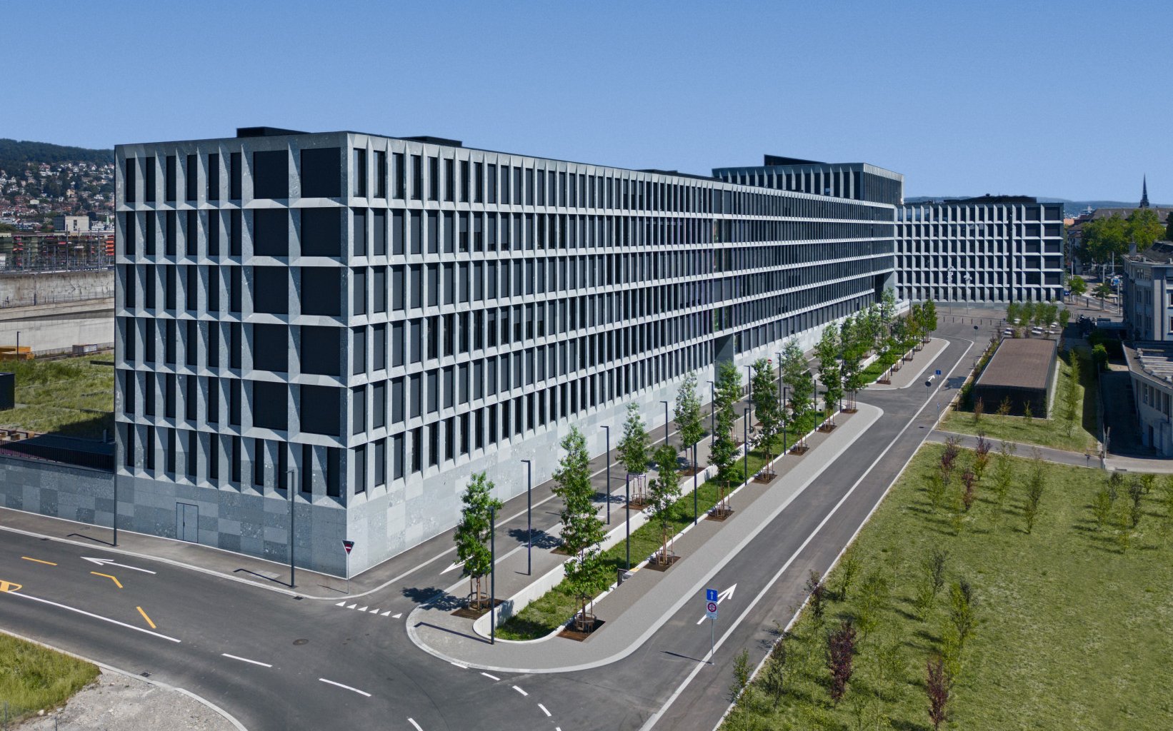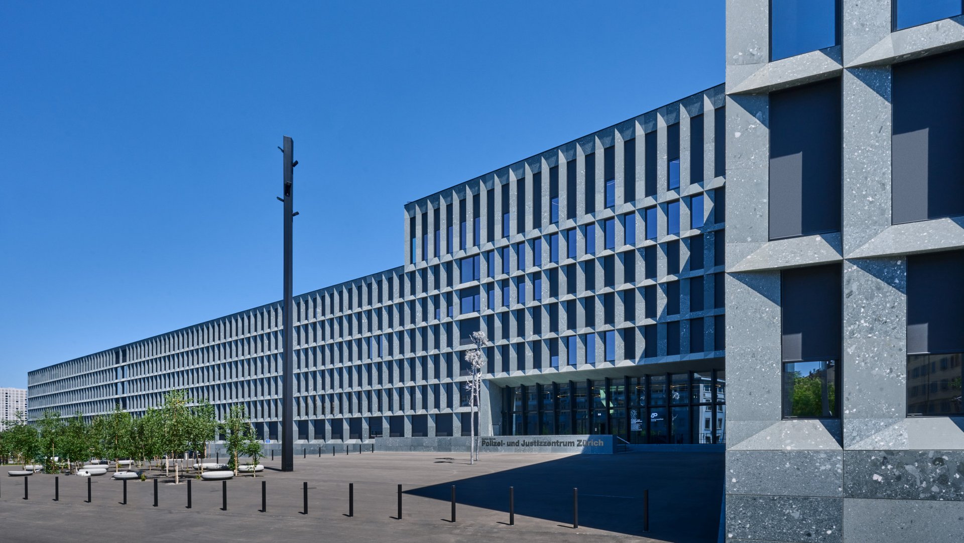 An imposing building dominates the plot of the former freight station in Zurich Aussersihl: the Police and Justice Centre (PJZ). The realisation of this complex project has been 22 years in the planning. The owner of the PJZ building, the Building Department of the Canton of Zurich, launched an invitation to tender for the project in 2006, which was won by the renowned firm of Zurich-based architects, Theo Hotz Partner AG. The architects were finally able to start work in 2017. Special criteria had to be taken into account before finally being able to consolidate the facilities and offices of the Zurich West Prison, cantonal police, police academy, public prosecution, correctional system and the Forensic Institute under one roof. An urban edifice of impressive dimensions was erected over the course of the following five years: 280 metres long, 115 metres wide and 35 metres high. The PJZ is currently home to 2'030 workstations. It is also home to 241 detention units for provisional arrests and pre-trial detentions.