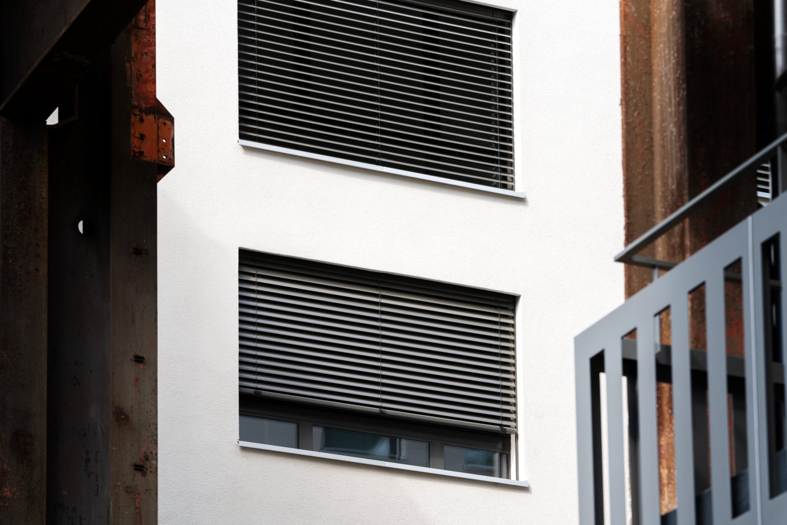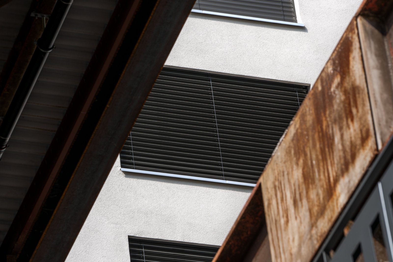 That’s right. High-rise buildings are subject to stricter requirements with regards to fire protection and wind stability. That is why we chose a FireTex fabric for the vertical fabric blinds used in the high-rise buildings. It is made from fire-resistant fibreglass that is flame retardant and does not release any toxic fumes. It also corresponds to wind class 5. A Firemaster fabric was used in the cassette awnings in the inner courtyard and the terraces on the 17th and 19th floors. This was specially developed for horizontal and vertical awnings and is likewise highly flame retardant.